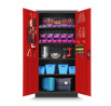 Plechová dílenská skříň s policemi BRUNO, 920 x 1850 x 500 mm, antracitově-červená