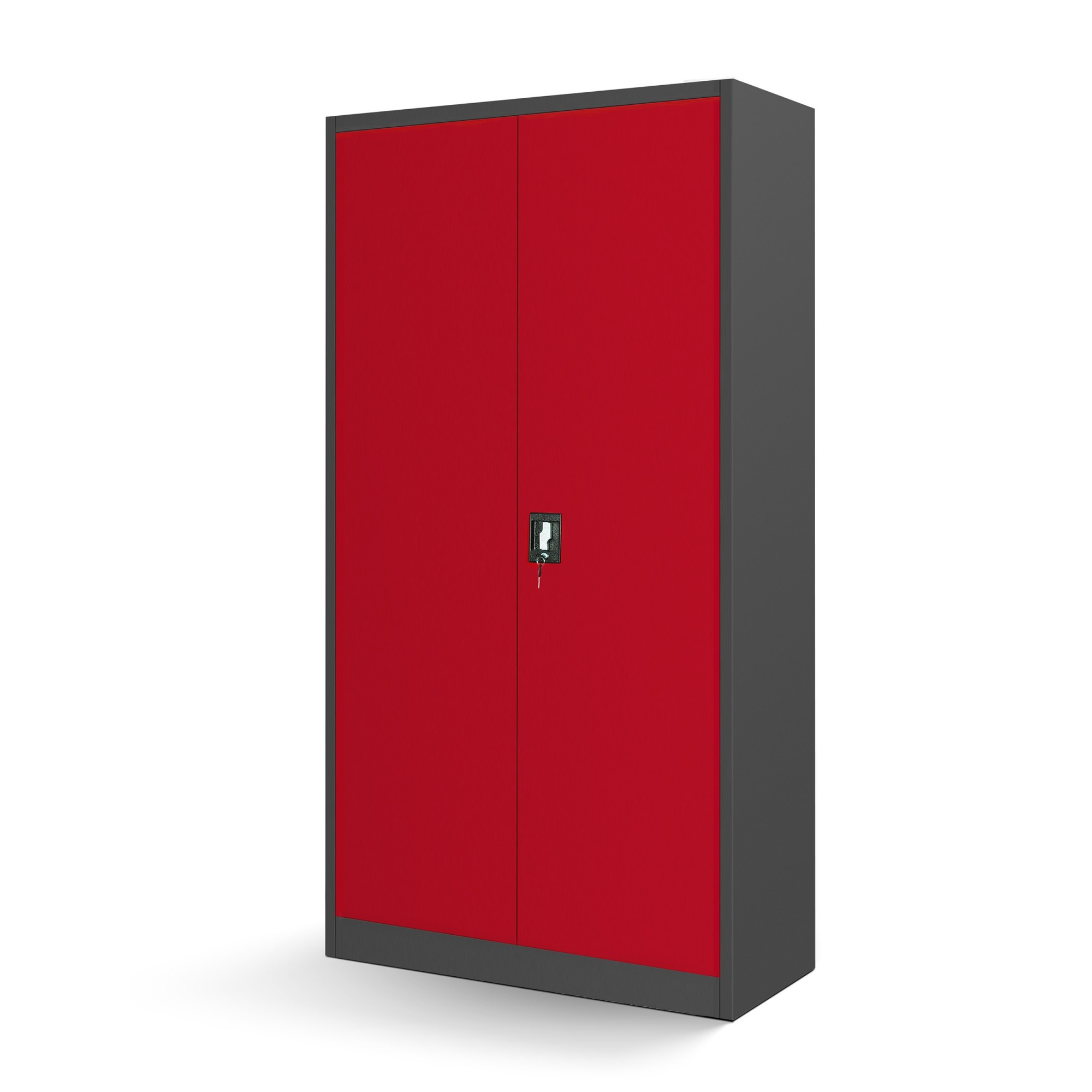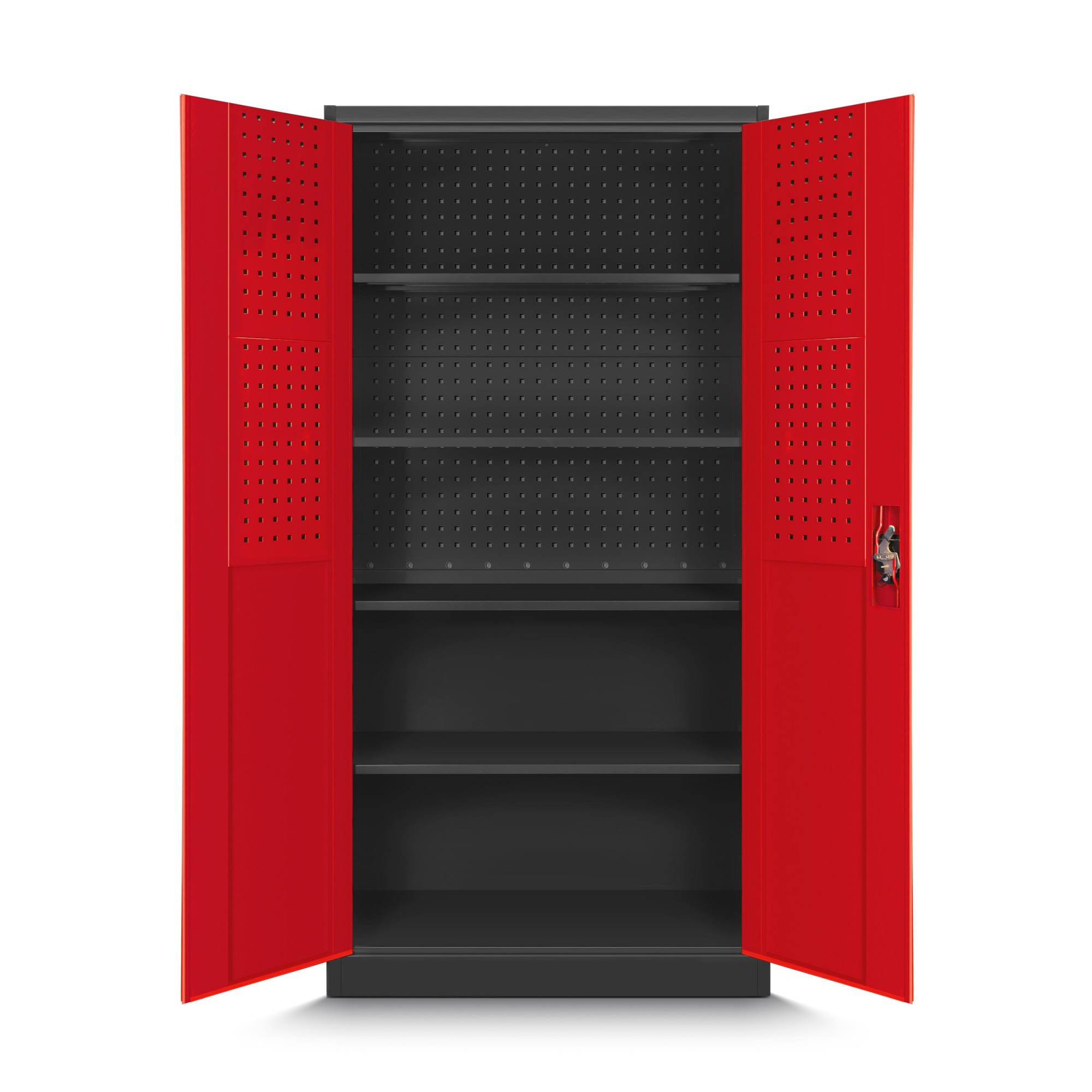 Plechová dílenská skříň s policemi BRUNO, 920 x 1850 x 500 mm, antracitově-červená