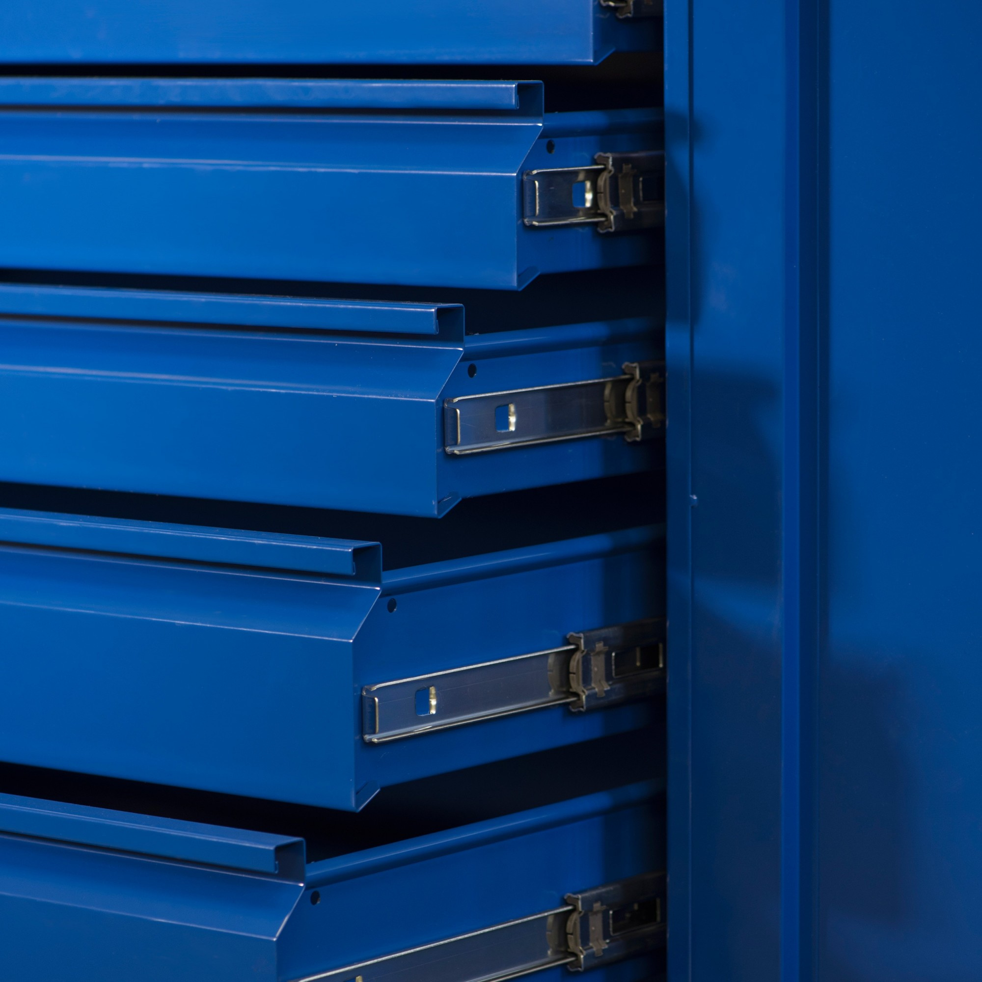 Plechová dílenská skříň se zásuvkami DAREK, 920 x 1850 x 500 mm, modrá