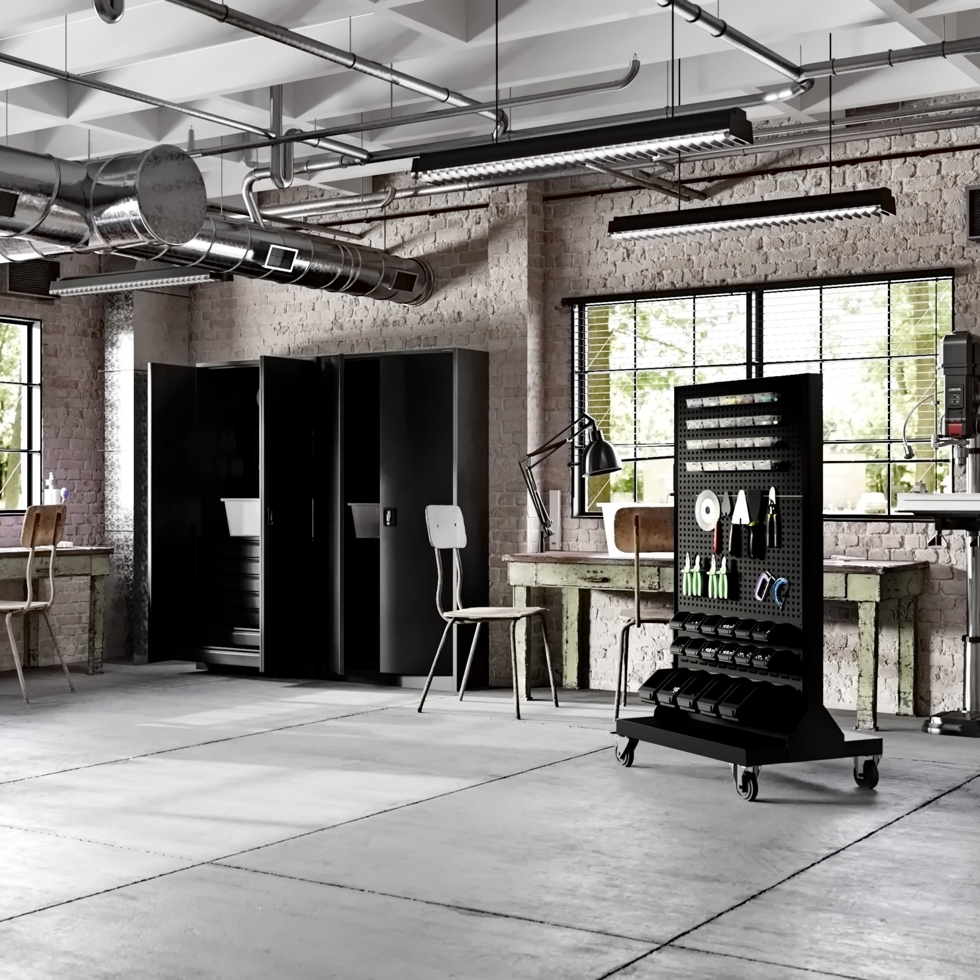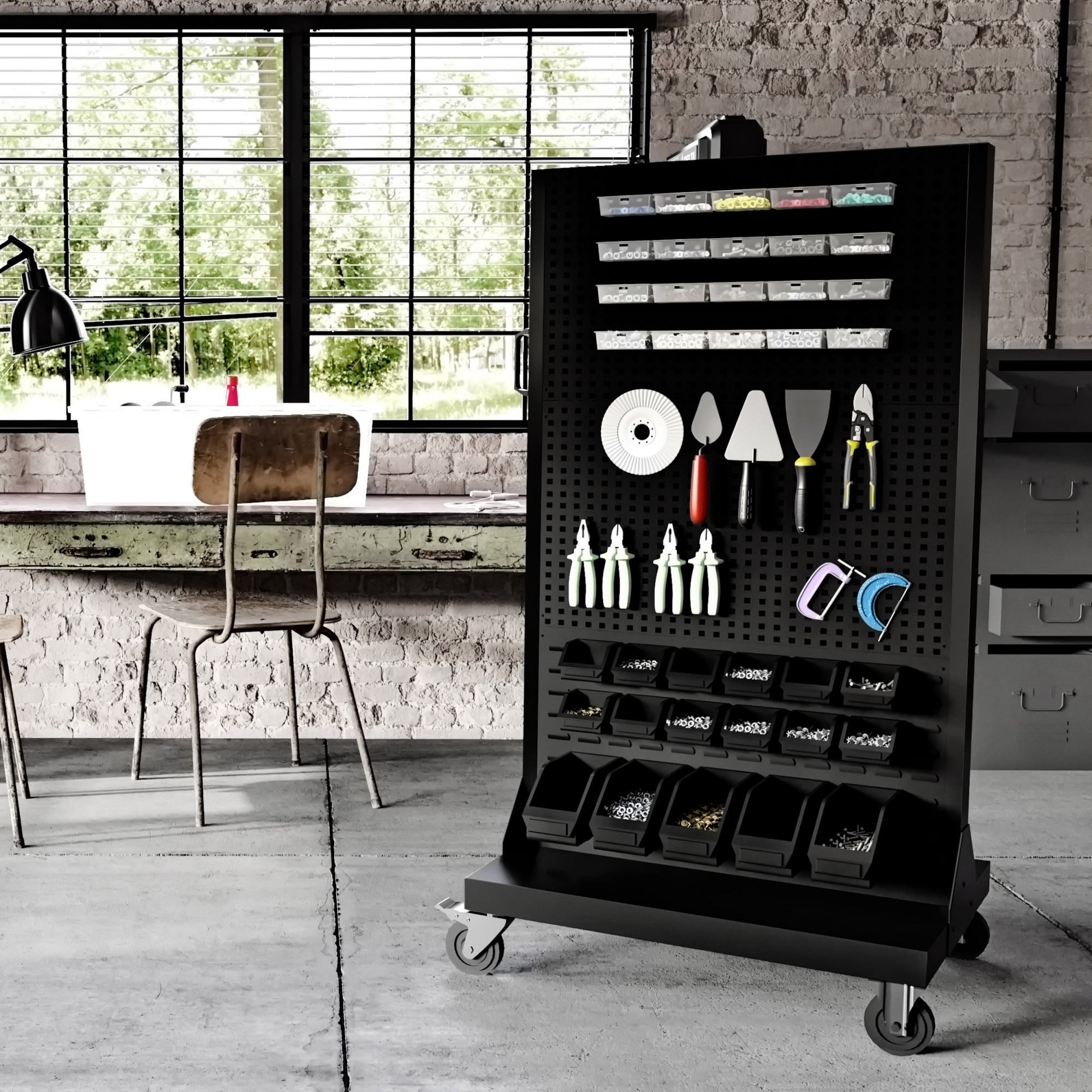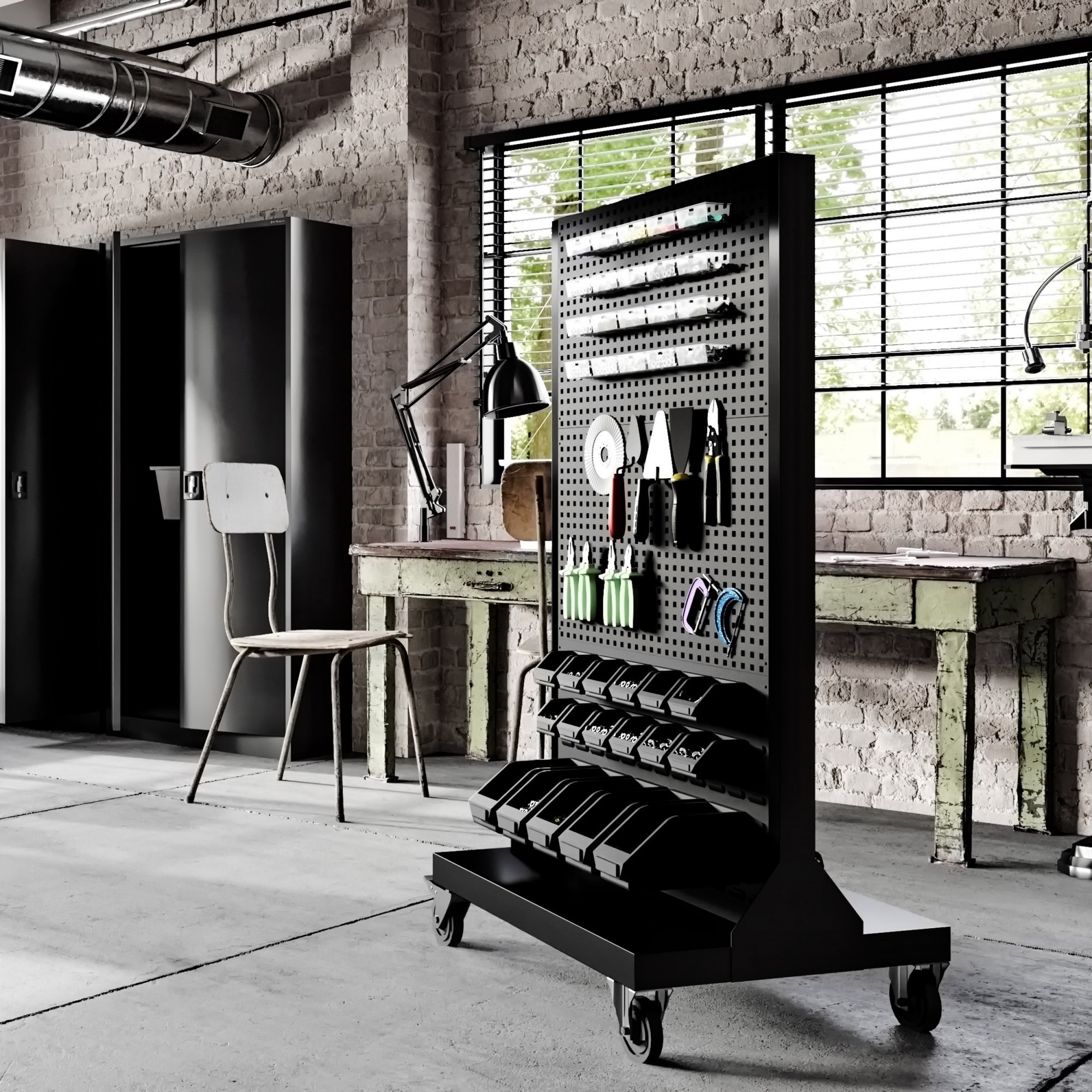 Dílenská stěna, tabule na nářadí MARIUSZ, 965 x 1555 x 610 mm, All Black: černá