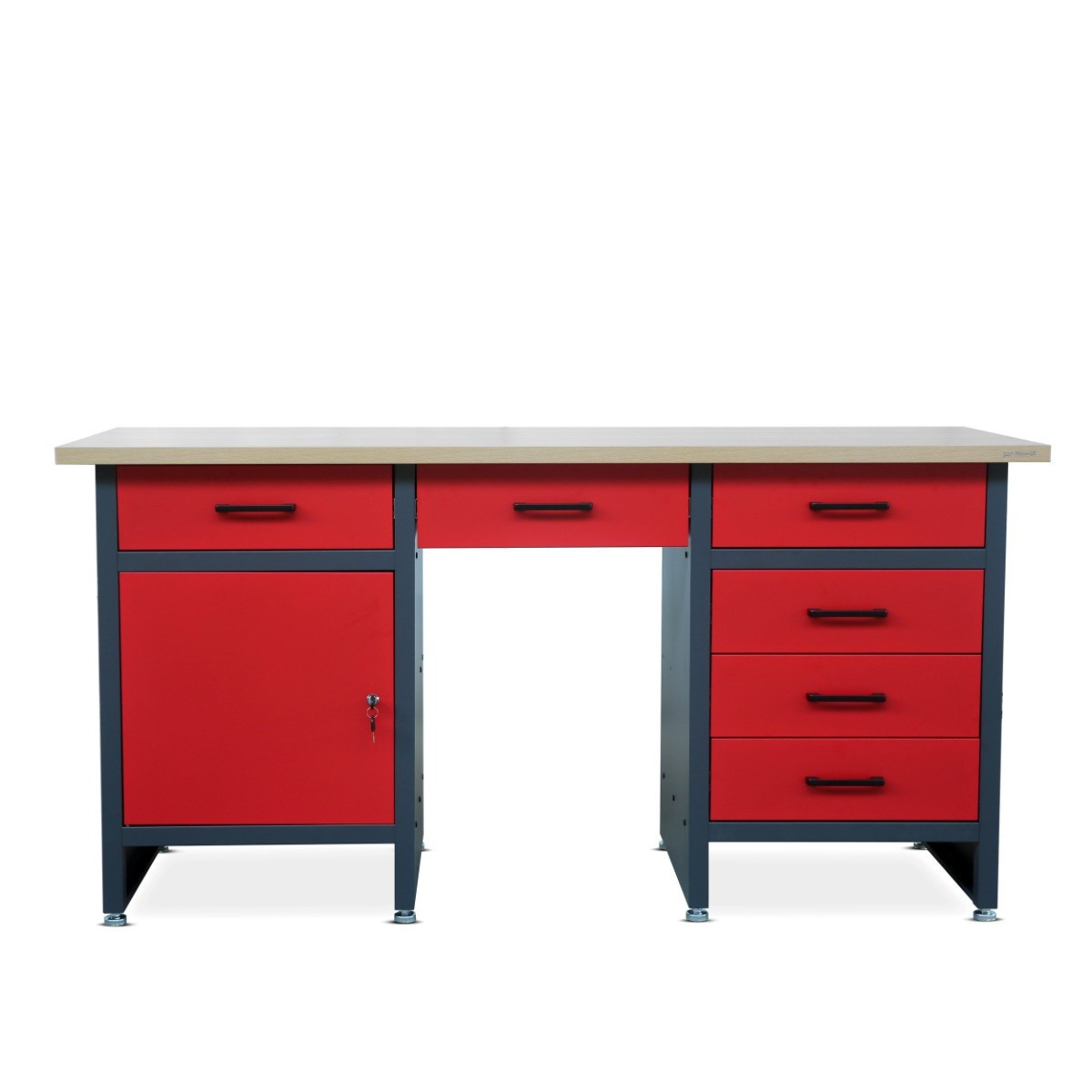 Dílenský stůl FRANK, 1700 x 850 x 600 mm, antracitově-červený