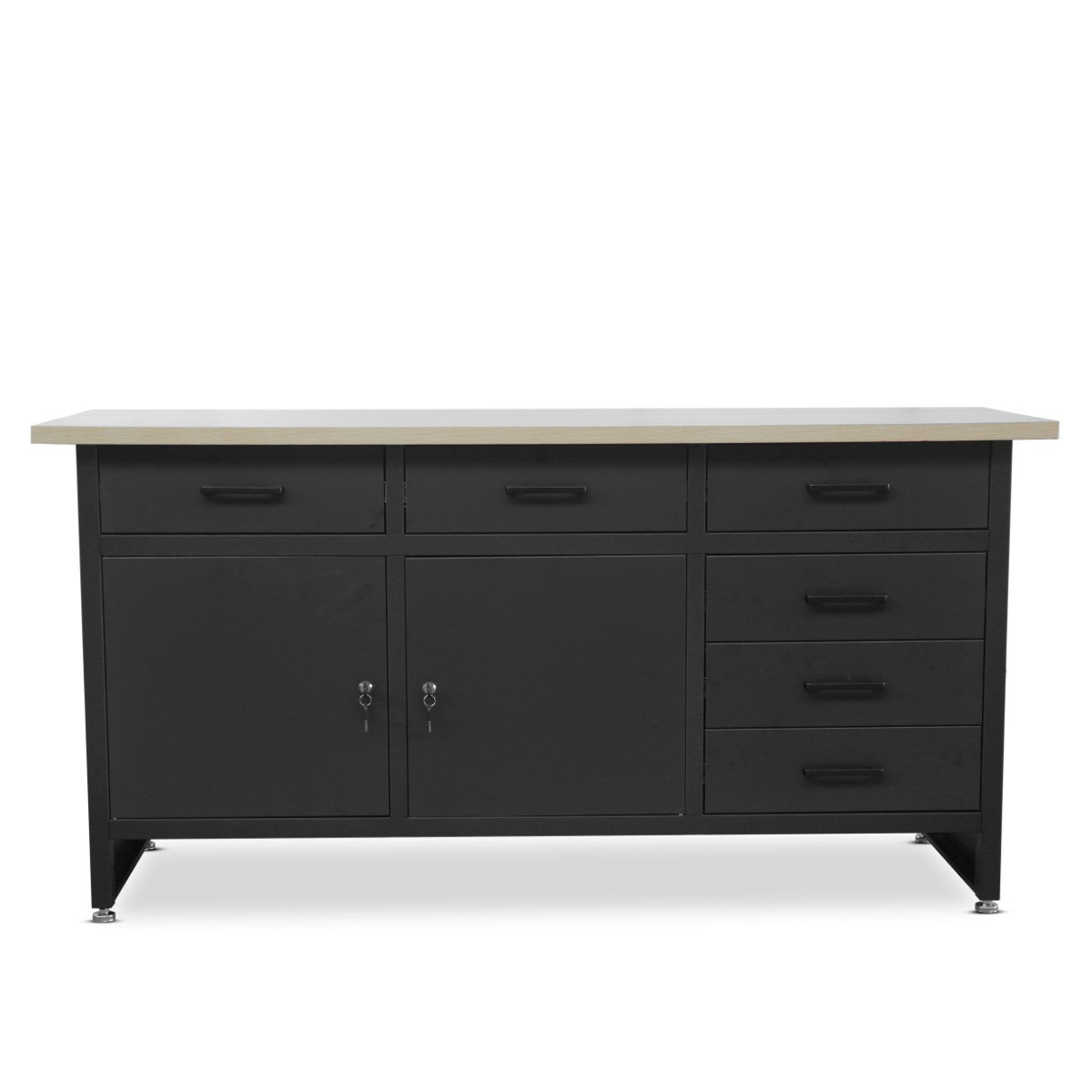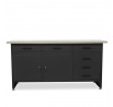 Velký dílenský stůl model HENRY — černý Pokud je u dílenského nábytku pro vás prioritou velká, pohodlná pracovní deska, pak bude pracovní stůl HENRY značky tou nejlepší volbou. Je vyroben z odolné a pevné laminované dřevotřískové desky o rozměrech 170 cm x 60 cm x 3 cm a také z konstrukce z oceli odolné proti poškození. Dílenský stůl HENRY se od ostatních odlišuje obrovskou úložnou plochou. Všechny vaše nástroje, klíče, šroubováky, matice, šrouby, lepidla, najdou své místo v jedné ze šesti zásuvek nebo dvou skříněk. Díky čemuž se udržování pořádku na pracovišti stane snadným a příjemným. Dílenský stůl HENRY je určen k vlastní montáži. Proč si vybrat dílenský stůl HENRY? Větší pracovní deska pro pohodlnou práci: laminovaná dřevotřísková deska, ze které je vyrobena, má šířku až 170 cm, hloubku 60 cm a tloušťku 3 cm. Solidní kovová konstrukce: odolný rám z práškově lakované oceli je trvanlivý a snadno udržovatelný. Maximální úložná plocha: 6 prostorných zásuvek a 2 skříňky uzamykatelné na klíč, to je rozhodně favorit mezi pracovními stoly. Silný bod dílen: přípustné zatížení jednotlivé zásuvky je 45 kg, police 50 kg a maximální zatížení pracovního stolu je 570 kg. Řešení pro náročné: velký pracovní stůl HENRY splní očekávání specialistů i domácích kutilů, hodí se do dílny, garáže, skladu. Pracovní stůl ve verzi XXL Dílenský stůl HENRY je model s obrovskou pracovní plochou. Vše díky unikátním rozměrům. Pracovní deska má hloubku 60 cm, zatímco její šířka je značně prodloužená a činí až 170 cm. Nezáleží na tom, zda vyrábíte nábytek nebo opravujete zařízení, určitě vám nebude chybět místo na provádění úkolů. Zvětšení pouze jednoho rozměru je originální, pohodlné řešení. Získáváš více pracovní plochy, přičemž nábytek nezabírá prostor a ideálně se hodí do dlouhých, úzkých místností. Pracovní stůl a skříň v jednom Pokud stojíte před výběrem dílenského nábytku pro střední nebo malý prostor, pracovní stůl HENRY se ukáže jako skvělá volba. Místo vytváření sestavy skládající se z ne zcela pohodlné desky a malé dílenské skříně, zvolte jeden kus nábytku. Stůl s rozsáhlým prostorem pro práci a navíc s největší možnou plochou pro ukládání. Dílenský stůl HENRY má 6 prostorných zásuvek a 2 skříňky uzamykatelné na klíč, takže úspěšně nahradí skříň na nářadí. Všechno, co potřebujete k práci, bude vždy na dosah ruky a perfektně uspořádané. I když nejsi příliš organizovaný a pořádek není tvou nejsilnější stránkou, pracovní stůl HENRY má pouze uzamykatelné úložné prostory. Co umožní účinně skrýt všechny nedokonalosti. Nejvyšší kvalita provedení Pracovní stůl HENRY je skvělý nábytek do dílny, řemeslné dílny, skladu nebo garáže. Je vyroben z pevné oceli chráněné práškovou barvou, která se skvěle osvědčuje v náročných podmínkách. Dokonce ani ve vlhkém, neizolovaném prostoru se na jejím povrchu neobjeví rez. Profil, zásuvky a čela skříněk tvoří ocel 1,0 mm, zatímco korpus a ostatní prvky - 0,8 mm. Dílenský stůl zůstane ve skvělém stavu po mnoho let. Další vrstva chrání nábytek, ale také mu dodává zajímavou barvu. Černý dílenský stůl v kombinaci se světlou deskou dodá místnosti charakter.Kývající se pracovní stůl je noční můrou každého kutila. Dílenský stůl HENRY bude stát rovně i na nerovné podlaze, protože je vybaven nožkami s nastavitelnou výškou. Stačí několik okamžiků, abyste dokonale vyrovnali nábytek. Pracovní stůl HENRY — specifikace: Barva: černá Výška stolu: 85 cm Šířka desky: 170 cm Hloubka desky: 60 cm Tloušťka desky: 3 cm Hmotnost: 91.3 kg Materiál desky: laminovaná dřevotříska Konstrukce stolu: ocel s práškovým nástřikem Maximální zatížení do 570 kg Přípustné zatížení police: 50 kg Přípustné zatížení zásuvky: 45 kg Závit nastavitelných nožek: M10*50 mm