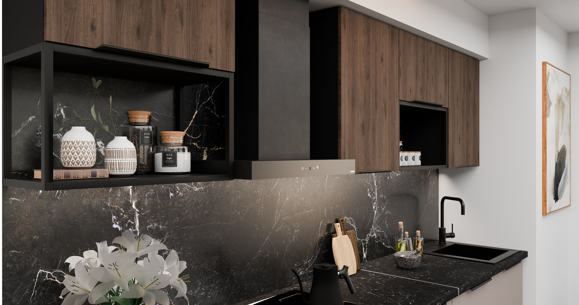 - Kuchyně MONZA - Černá/Ořech Okapi