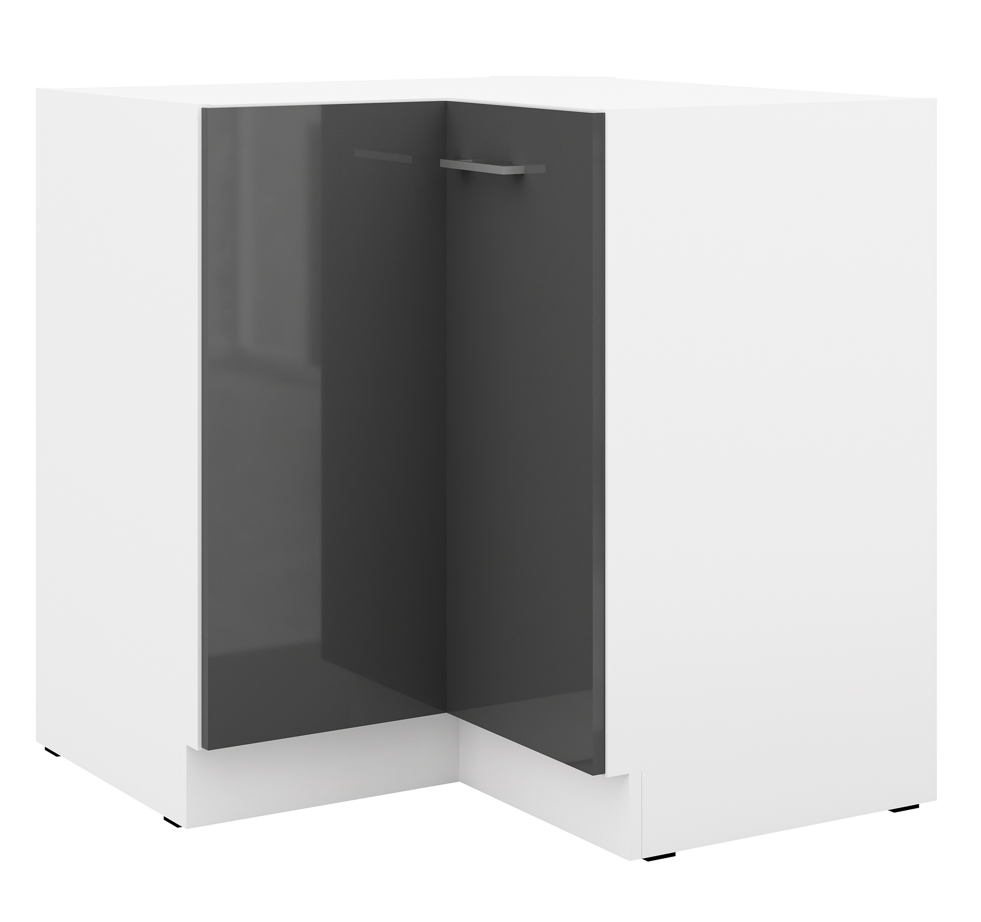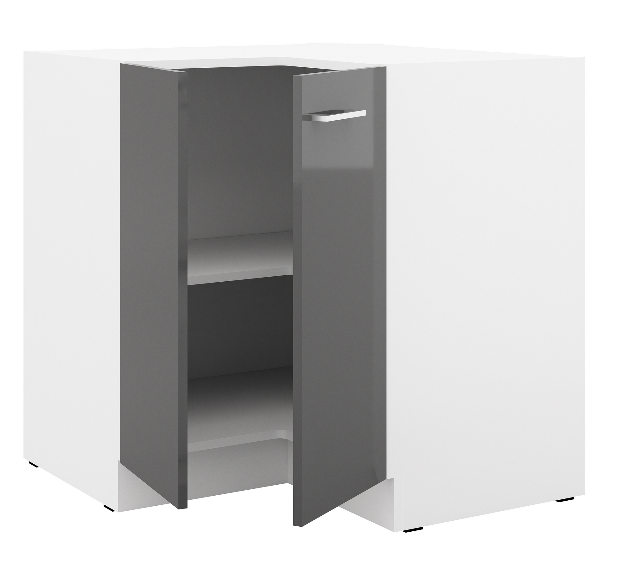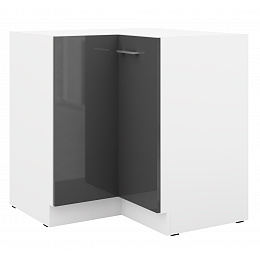 Dolní rohová skříňka SOLA - 89x89 DN 1F BB, Bílá/Šedý Lesk