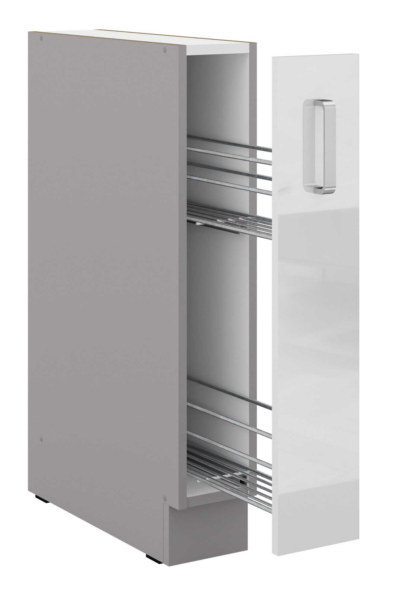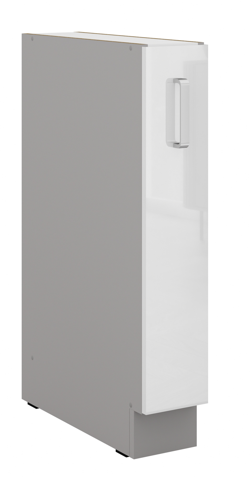 - Dvířka a čela šuplíků jsou vyrobeny z laminované desky 16 mm PUR HG v Bílém lesku