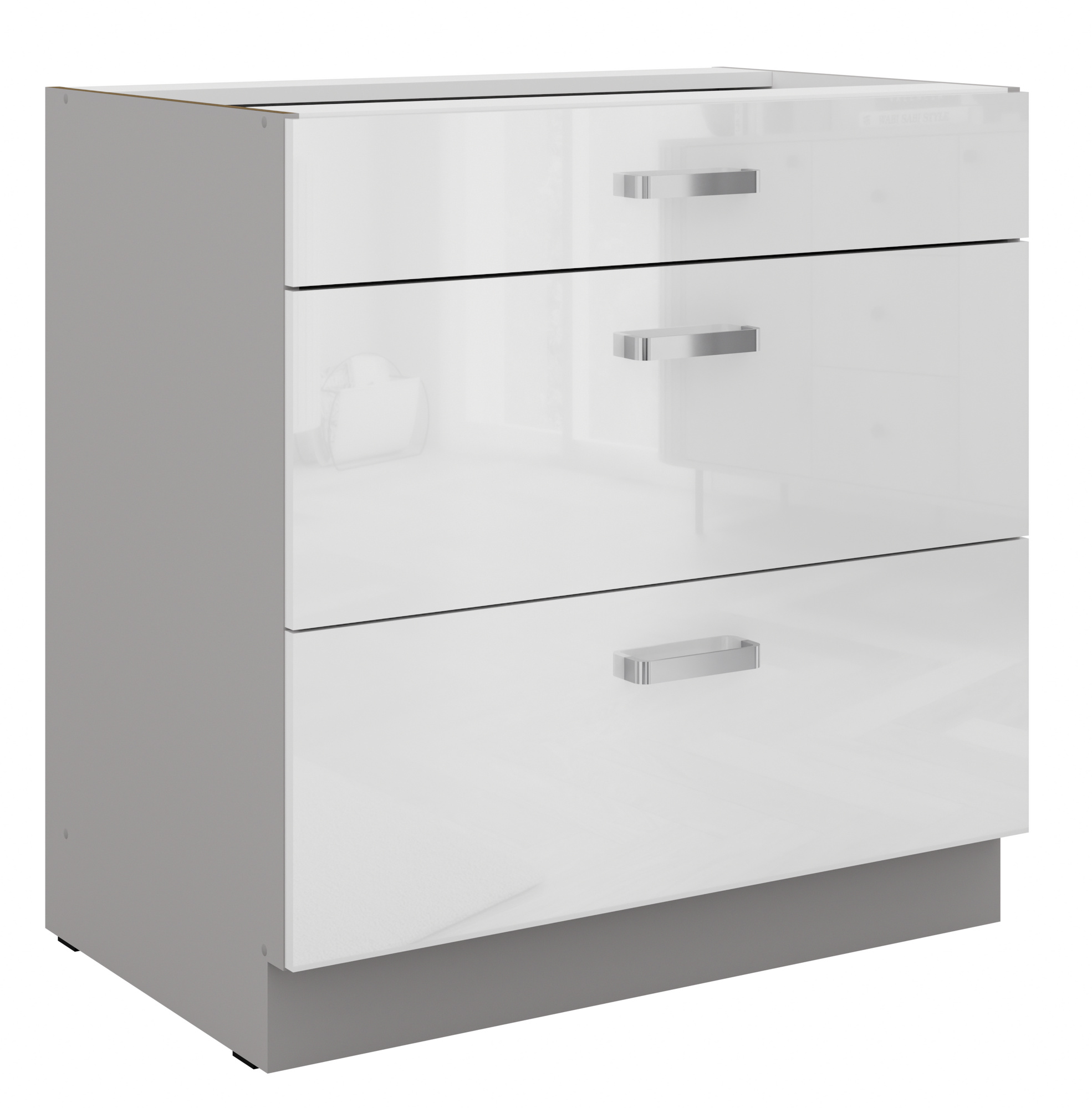 Dolní skřínka BIANCA - 80 D 3S BB, Šedá / Bílý lesk