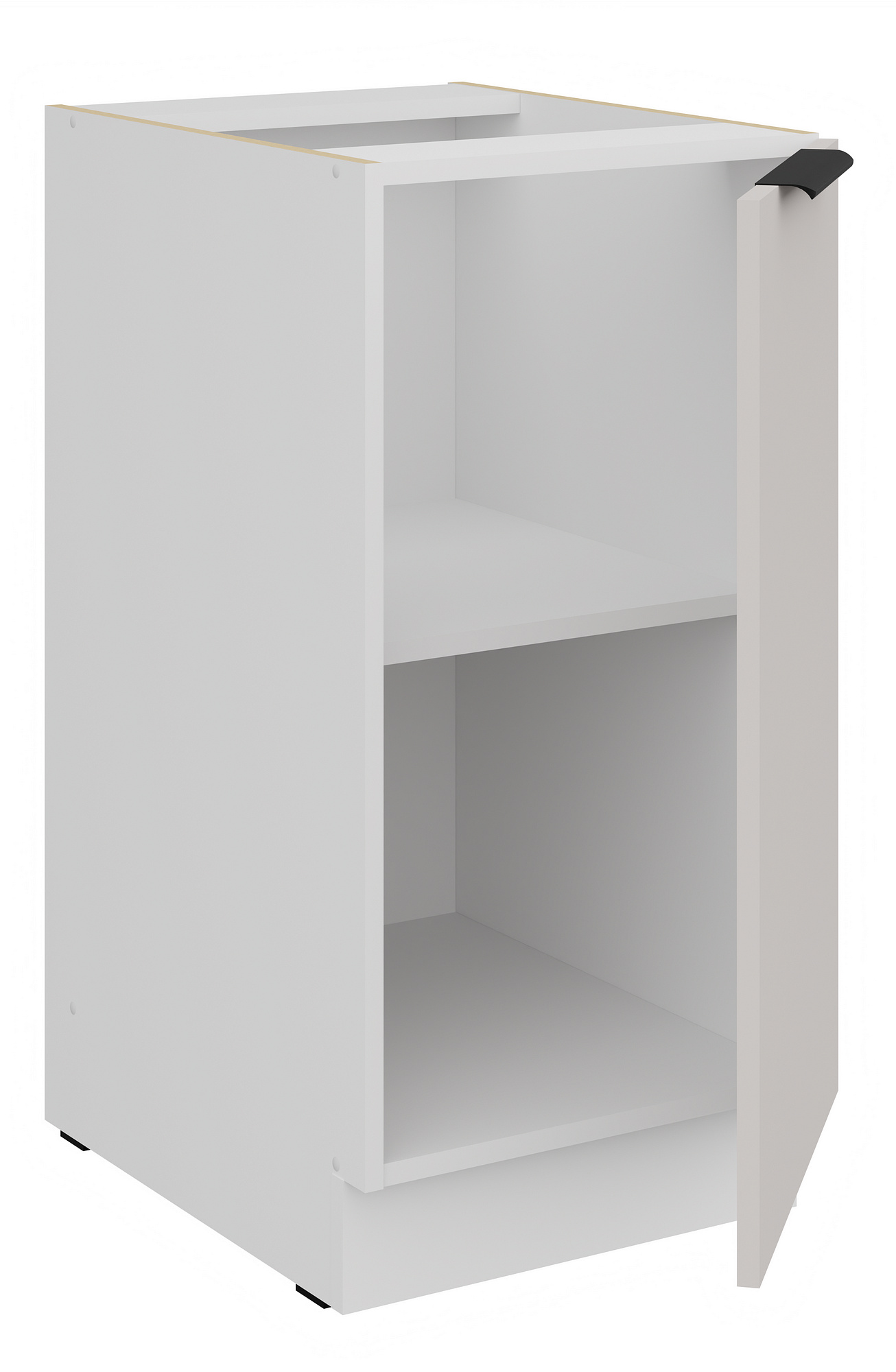 Dvířka skříňky jsou universální, což znamená, že je můžete namontovat jako pravé nebo levé, podle vašich potřeb a dispozice kuchyně. Vnitřek skříňky je v bílém provedení, což zajišťuje čistý a svěží vzhled.
