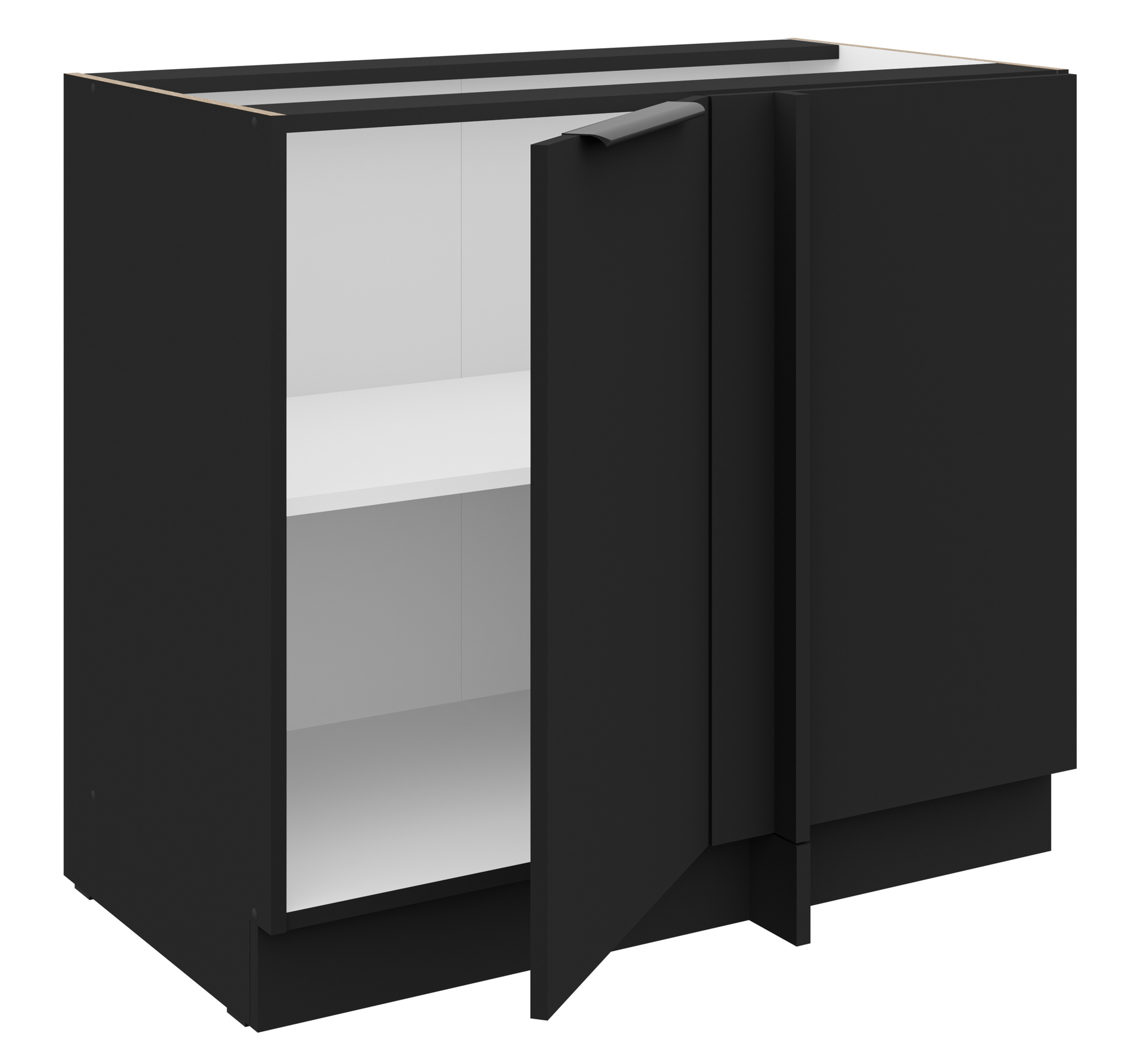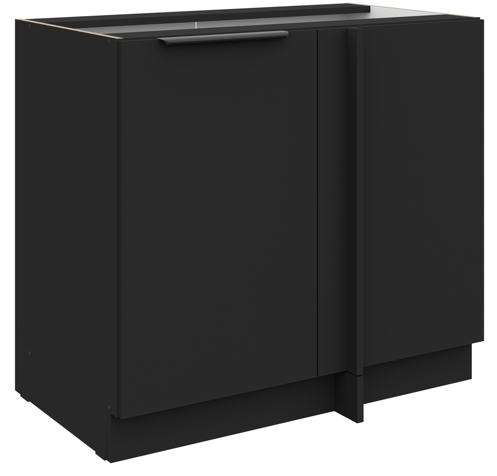 - Dvířka a čela šuplíků jsou vyrobeny z LTD desky výšky 16 mm v barvě Černá mat