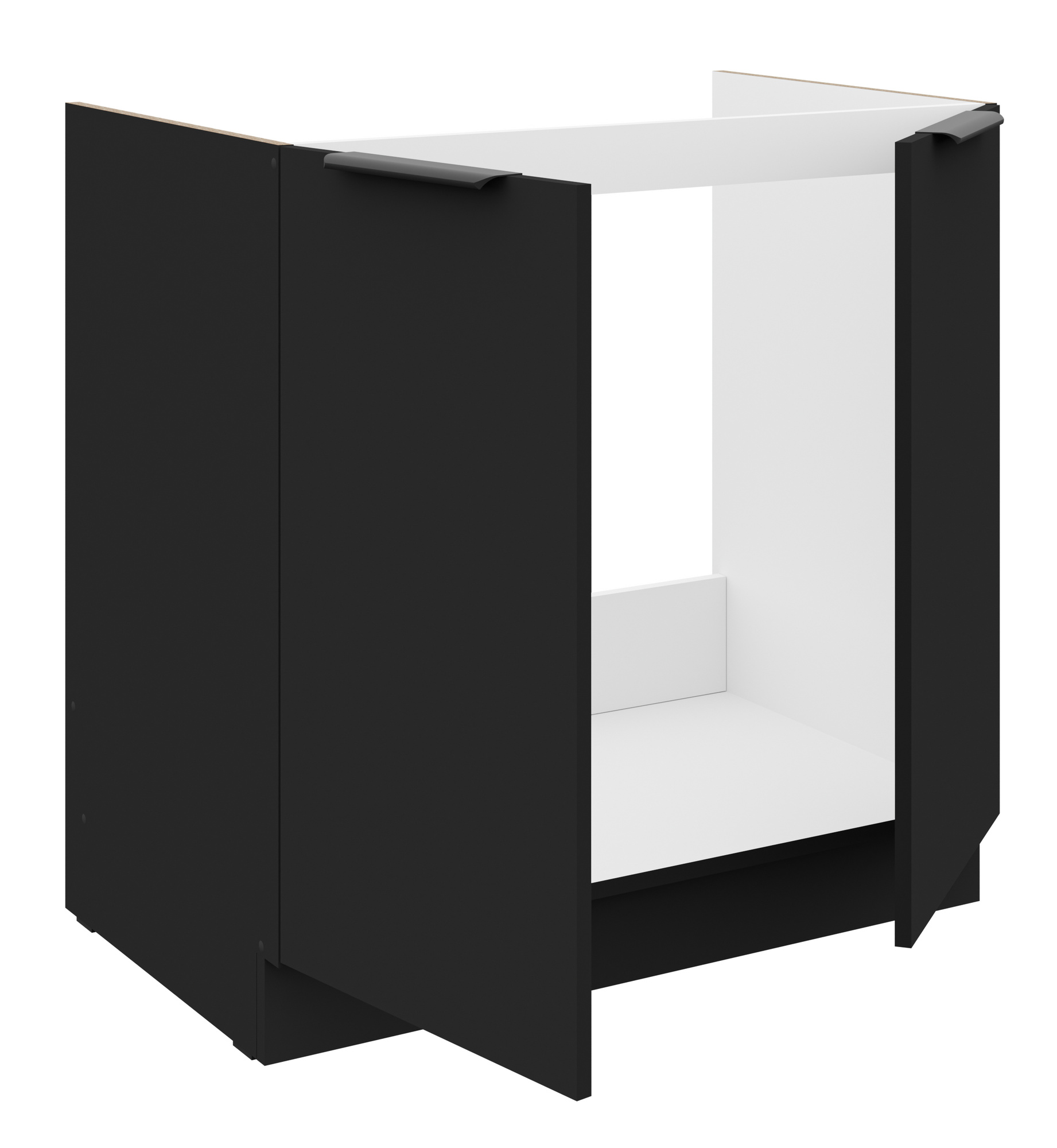 - Dvířka a čela šuplíků jsou vyrobeny z LTD desky výšky 16 mm v barvě Černá mat