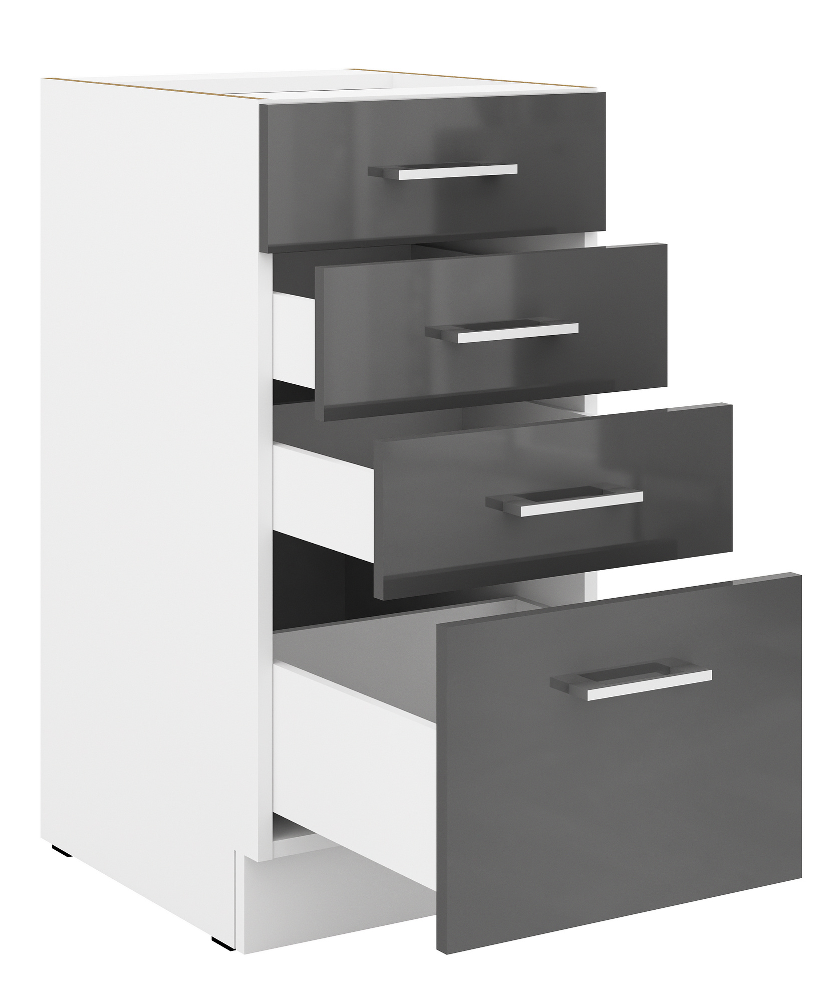 Dolní skříňka SOLA - 40 D 4S BB, Bílá/Šedý Lesk
