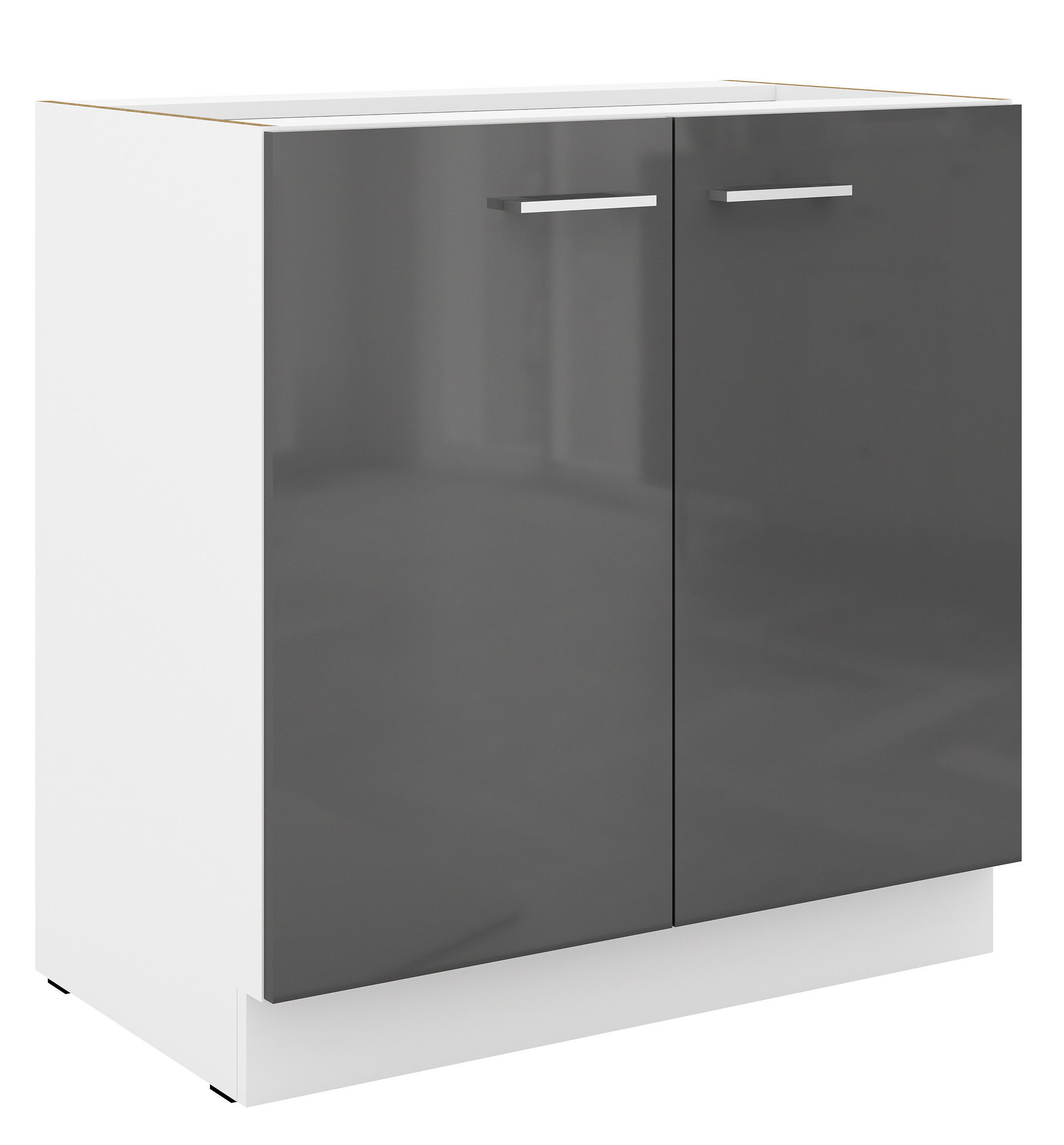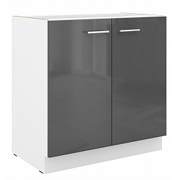 Dolní skříňka SOLA - 80 D 2F BB, Bílá/Šedý Lesk