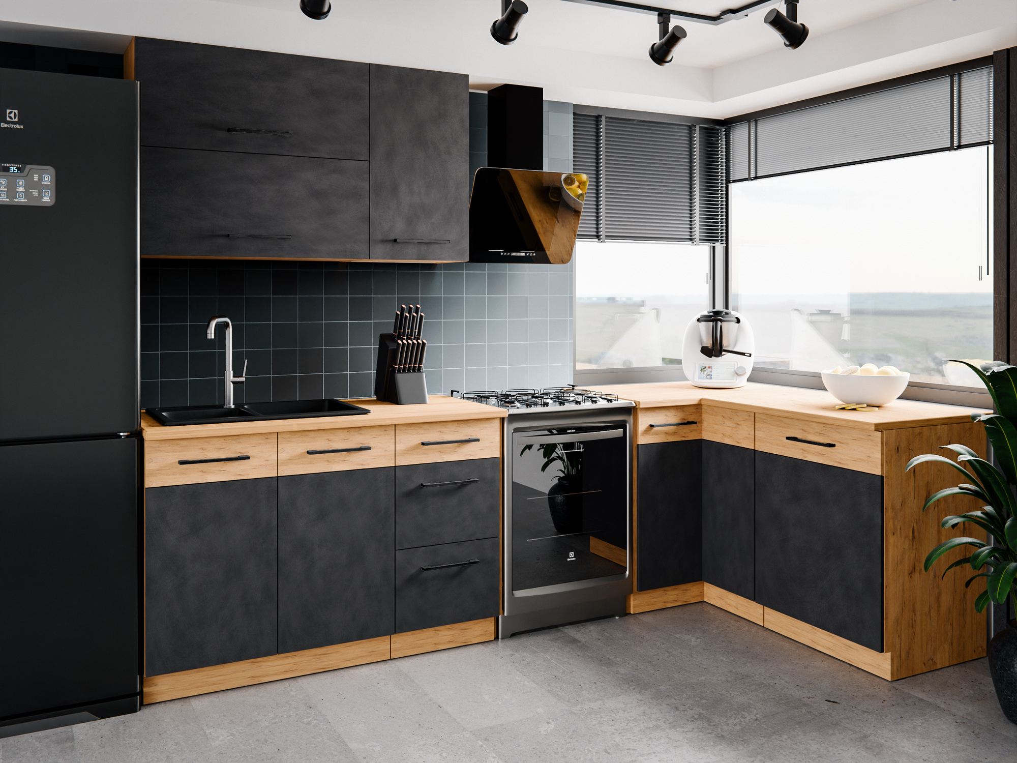 - Kuchyně MONZA - Černá/Ořech Okapi