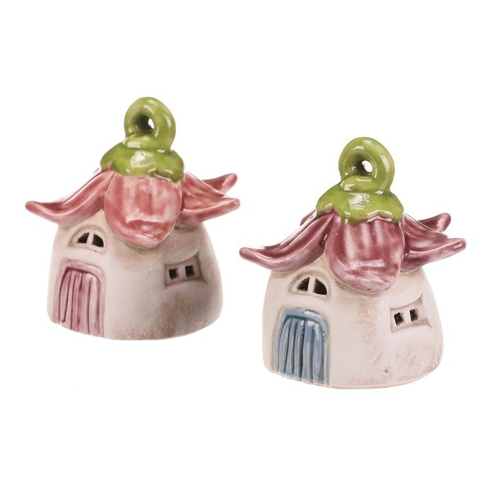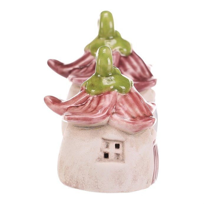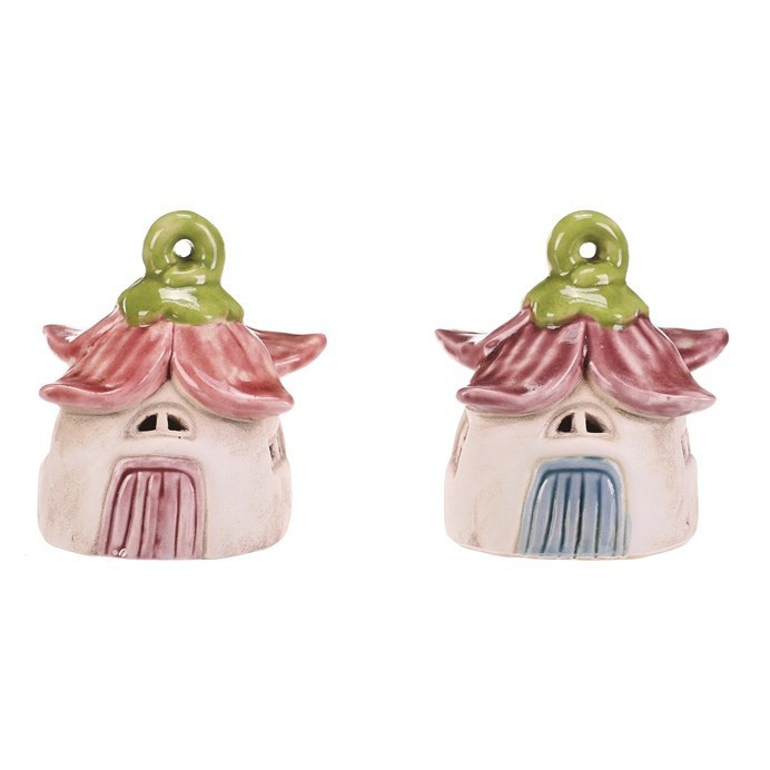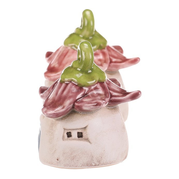 Keramický domeček s LED osvětlením v červenozeleném barevném provedení přináší do interiéru jemnou atmosféru a dekorativní efekt. Jeho tvar připomíná květinu s okvětními lístky tvořícími střechu a malým otvorem pro světlo, které jemně prosvítá. Díky praktickému otvoru v horní části lze domeček snadno zavěsit nebo postavit na poličku či stůl. Velikost S umožňuje variabilní použití v různých prostorách, kde vynikne jako originální doplněk s decentním osvětlením.