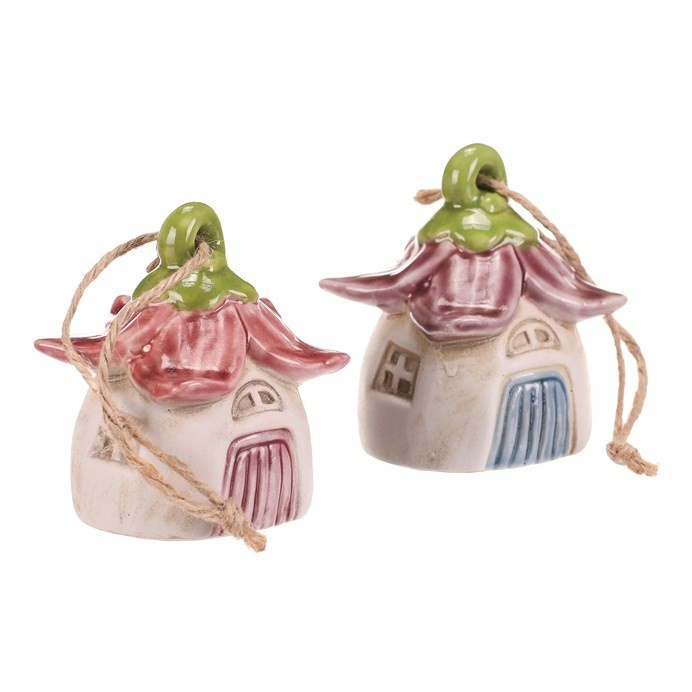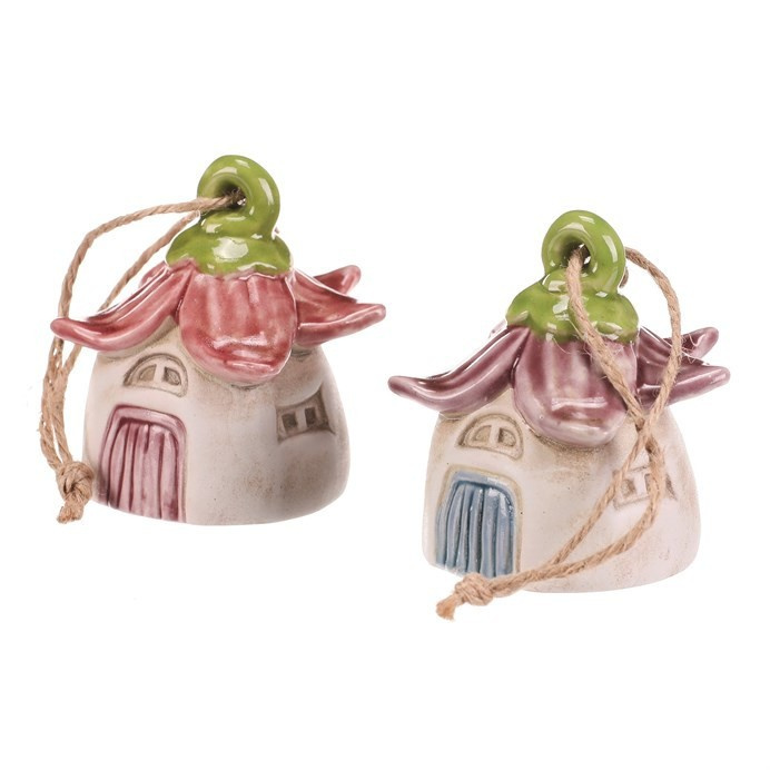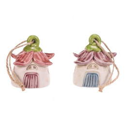 Domeček květinový - keramika, závěsný zvonek, mix 2, cena za 1 ks