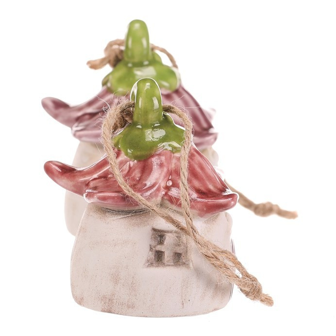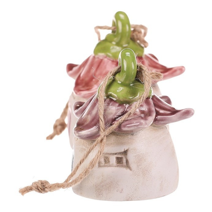 Keramický závěsný zvonek ve tvaru domečku s květinovou střechou přináší do interiéru i exteriéru jemný dekorativní prvek. Jeho barevné provedení kombinuje přírodní tóny s červenými a zelenými akcenty, které podtrhují detailní zpracování střechy i dveří. Praktické provedení s jutovým závěsem umožňuje snadné zavěšení na háček či větev. Zvonek je vhodný pro vytvoření příjemné atmosféry na terase, balkóně nebo v zahradě. Nabízí kombinaci dekorace a funkčního doplňku v jednom.