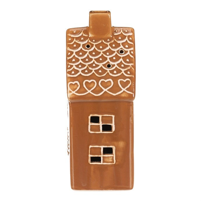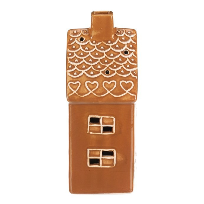 Keramický patrový domek s LED osvětlením bude ideální dekorací pro vánoční období. Vypadá, jako by byl upečen z perníku mistrem cukrářem a ozdoben sladkou bílou polevou. Po rozsvícení světla uvnitř domu, se vám naskytne úžasný pohled na pronikající paprsky světla srze všechna okénka. Zahalte tak svůj sváteční prostor snadno a rychle do skutečně pohádkové atmosféry, díky této úžasné perníkové ozdobě.