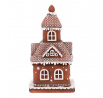 Stolní dekorace v podobě perníkového domku s věžičkou bude krásnou ozdobou zejména pro kouzelný vánoční čas. Je v hnědé barvě a má na sobě bílé zdobení, takže vypadá, jako by jej upekl a vyzdobil sám mistr cukrář. Domek je vybavený LED osvětlením uvnitř, takže nabízí možnost obohatit jemným světlem váš sváteční prostor.