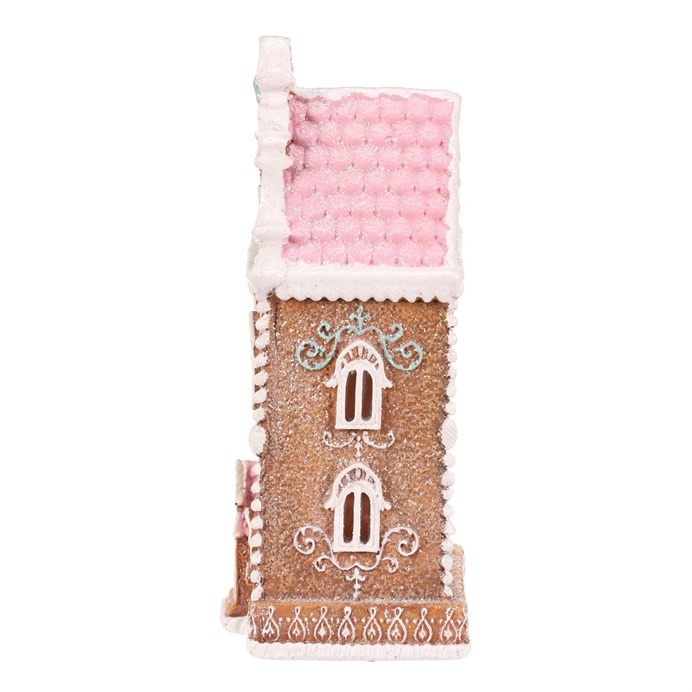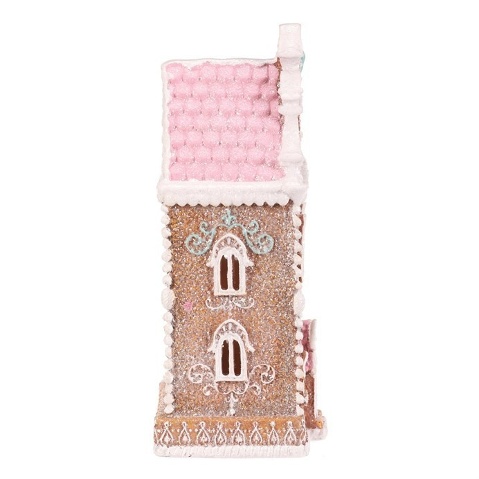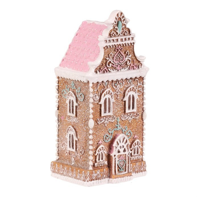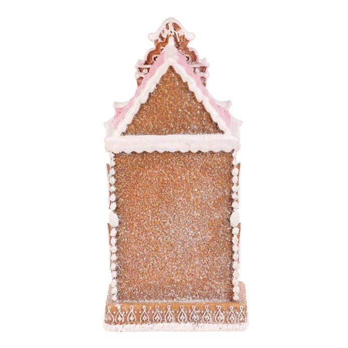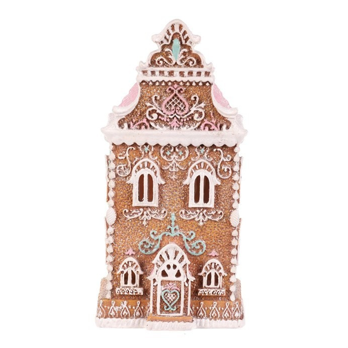 Polyresinová stolní dekorace, v podobě zdobeného patrového domku v perníkovém designu, bude nádhernou dekorací pro kouzelné vánoční období. Vypadá jako by byl skutečně vytvořen z perníku a ozdoben sladkou barevnou polevou. To ale ještě není vše! Díky zabudovanému LED osvětlení uvnitř, si můžete po jeho rozsvícení vychutnávat pohled na nádherně rozptýlené paprsky, které vycházejí skrze všechna okénka ven.