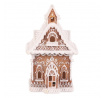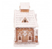 Domeček perníkový - polyresin, LED osvětl., hnědý s bílým zdobením
