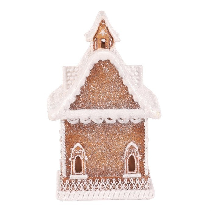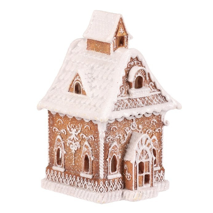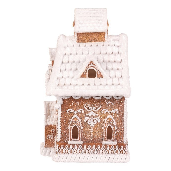 Polyresinová stolní dekorace, v podobě zdobeného domku v perníkovém designu, bude nádhernou dekorací pro kouzelné vánoční období. Vypadá jako by byl skutečně vytvořen z perníku a ozdoben sladkou bílou polevou. To ale ještě není vše! Díky zabudovanému LED osvětlení uvnitř, si můžete po jeho rozsvícení vychutnávat pohled na nádherně rozptýlené paprsky, které vycházejí skrze všechna okénka ven.