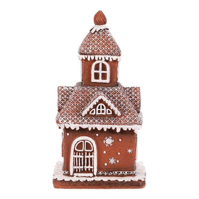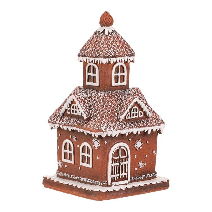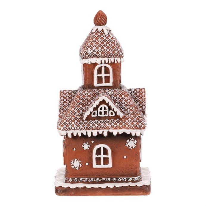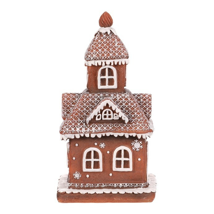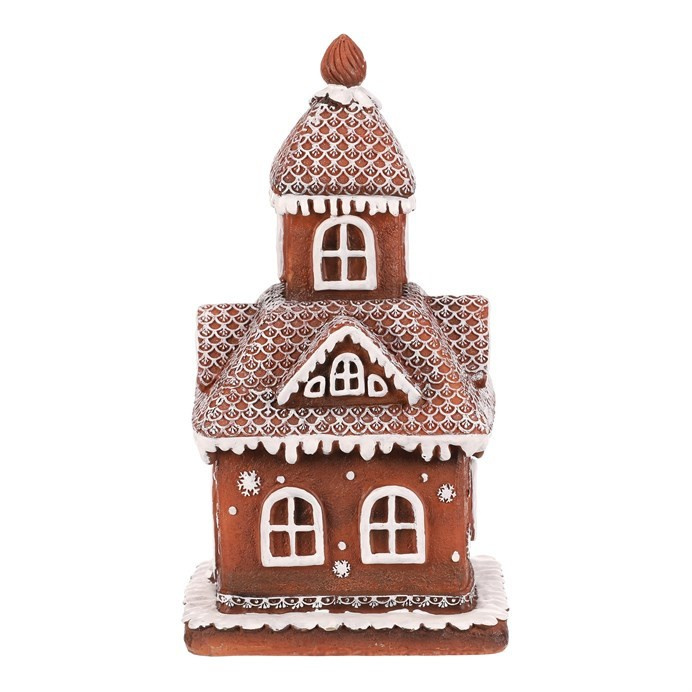 Stolní dekorace v podobě perníkového domku s věžičkou bude krásnou ozdobou zejména pro kouzelný vánoční čas. Je v hnědé barvě a má na sobě bílé zdobení, takže vypadá, jako by jej upekl a vyzdobil sám mistr cukrář. Domek je vybavený LED osvětlením uvnitř, takže nabízí možnost obohatit jemným světlem váš sváteční prostor.