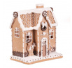 Domeček perníkový s panáčkem - polyresin, LED osvětl., hnědo-bílý