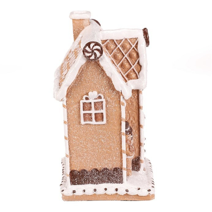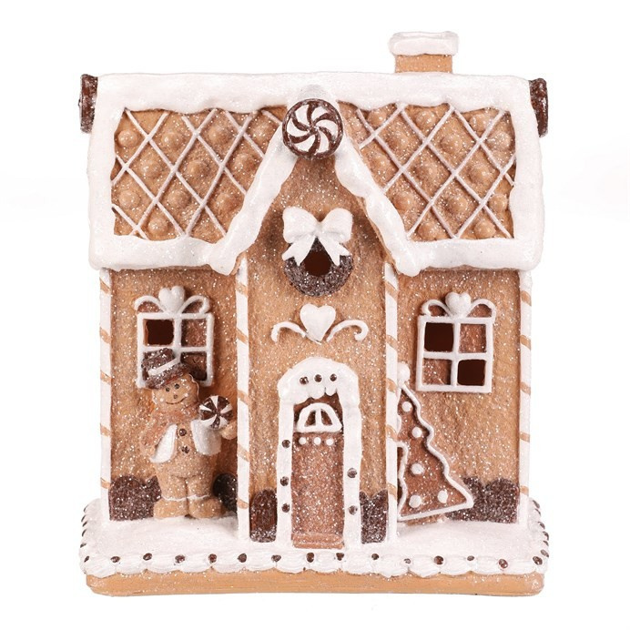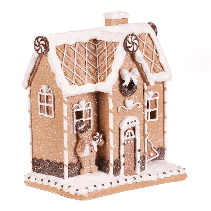 Domeček perníkový s panáčkem - polyresin, LED osvětl., hnědo-bílý