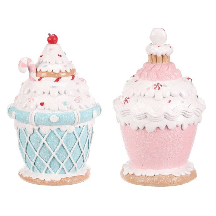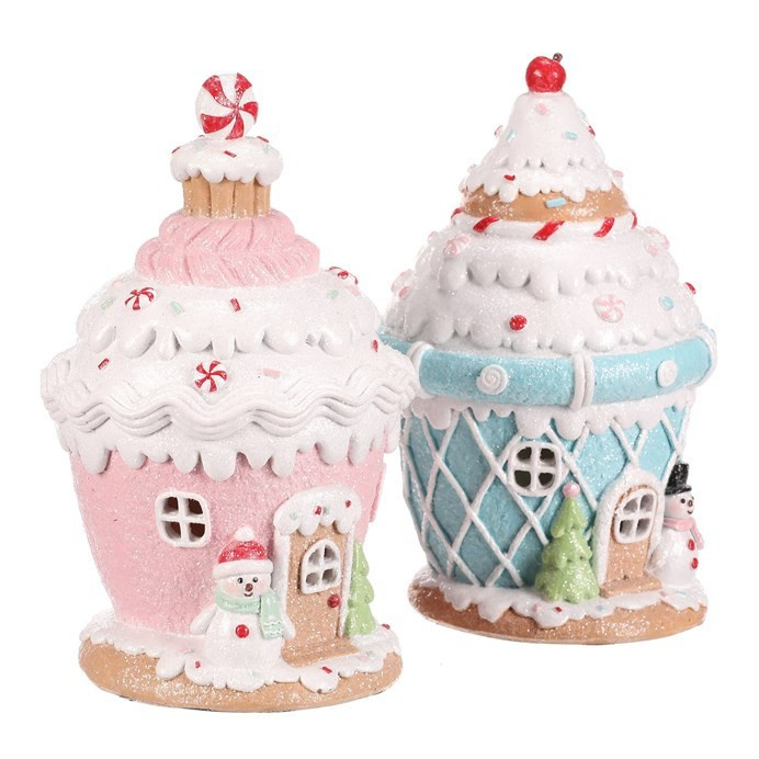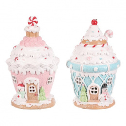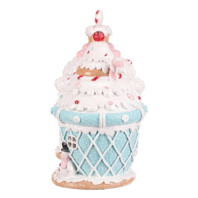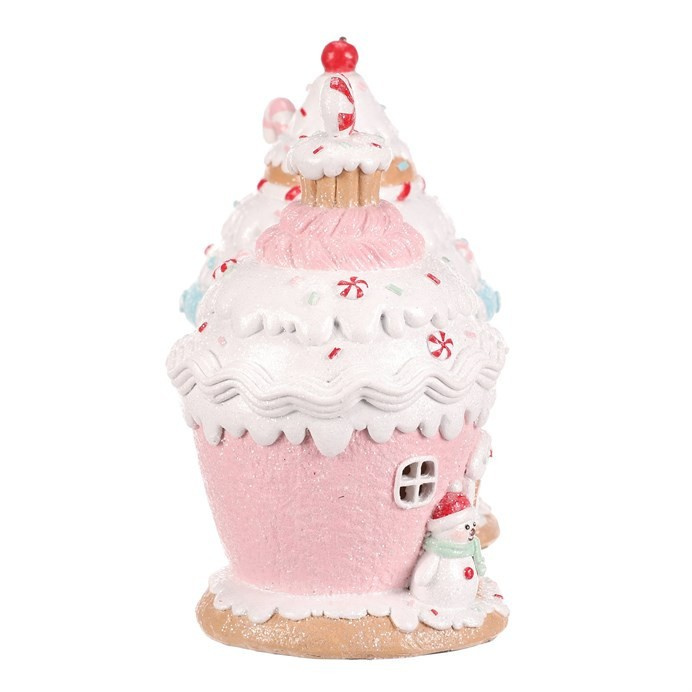 Domek z cukrovinek v podobě dortíku s polevou, vyrobený z polyresinu, je navíc vybaven LED osvětlením, které vytváří neodolatelný světelný efekt. Mix dvou veselých barev přináší do vánoční výzdoby sladkou a kouzelnou atmosféru, která dokonale oživí každý prostor.
