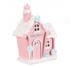 Domeček z cukrovinek - polyresin, LED osvětlení, růžový
