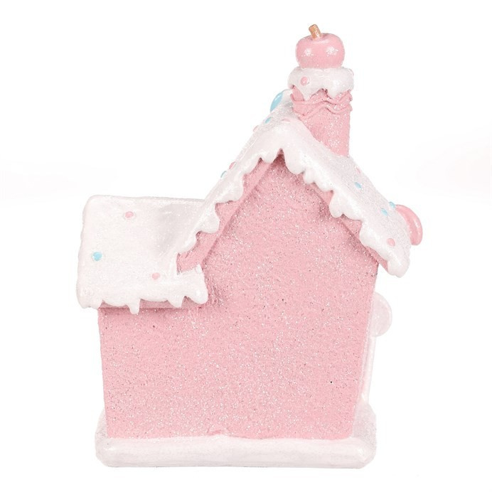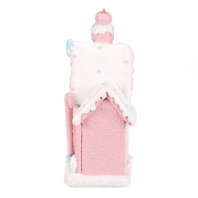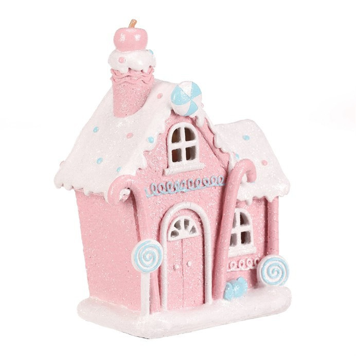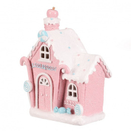 Domeček z cukrovinek - polyresin, LED osvětlení, růžový