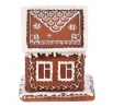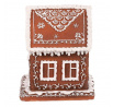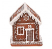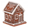Domeček perníkový - polyresin, LED osvětl., hnědý s bílým zdobením