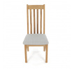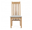 Jídelní židle s označením C-2100 SIL2 je vyrobena z masivního dubového dřeva, které zajišťuje pevnost a stabilitu. Světlé přírodní odstíny dřeva doplňuje sedák potažený světle šedou látkou, která nabízí příjemný komfort při sezení. Židle disponuje ergonomicky tvarovaným vysokým opěrákem s vertikálními dřevěnými lamelami, které podporují správné držení těla během stolování. Masivní nohy jsou pevně spojeny vodorovnými výztuhami, což zvyšuje celkovou odolnost a nosnost židle. Díky jednoduchému a nadčasovému designu je vhodná do různých typů interiérů, kde kladou důraz na kvalitu a přírodní materiály.