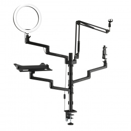 Představujeme X-Stream, revoluční držák pro streamování, který promění váš pracovní prostor v profesionální vysílací studio. Zapomeňte na přeplněný stůl a neustálé hledání ideální pozice pro vaše zařízení. S X-Stream získáte dokonalou kontrolu nad uspořádáním vašeho vybavení a uvolníte tak svůj kreativní potenciál.