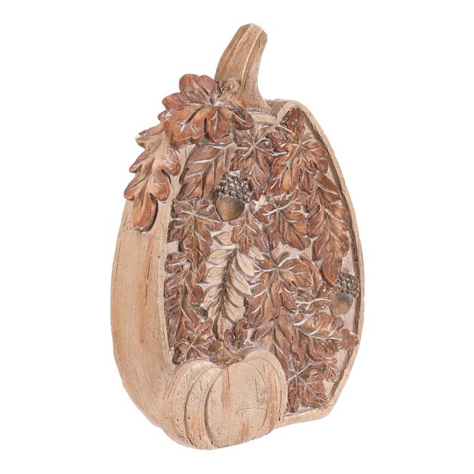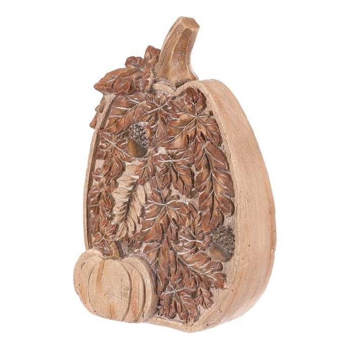 Dýně s osvětlením v imitaci dřeva a s podzimním listím se žaludy přináší do vaší zahrady kouzelnou podzimní atmosféru. Vyrobená je z magnesia, ale svým zpracováním skvěle zapadne mezi dřeviny a keře. Dekorace je vybavena osvětlením, díky kterému můžete rozsvítit vybrané místo, čímž vytvoříte zejména za temných večerů, skutečně tajemnou atmosféru. Tato dekorace je skvělou volbou pro zahradu, terasu, balkon, případně i stylovým prvkem vybraného místa v interiéru.