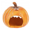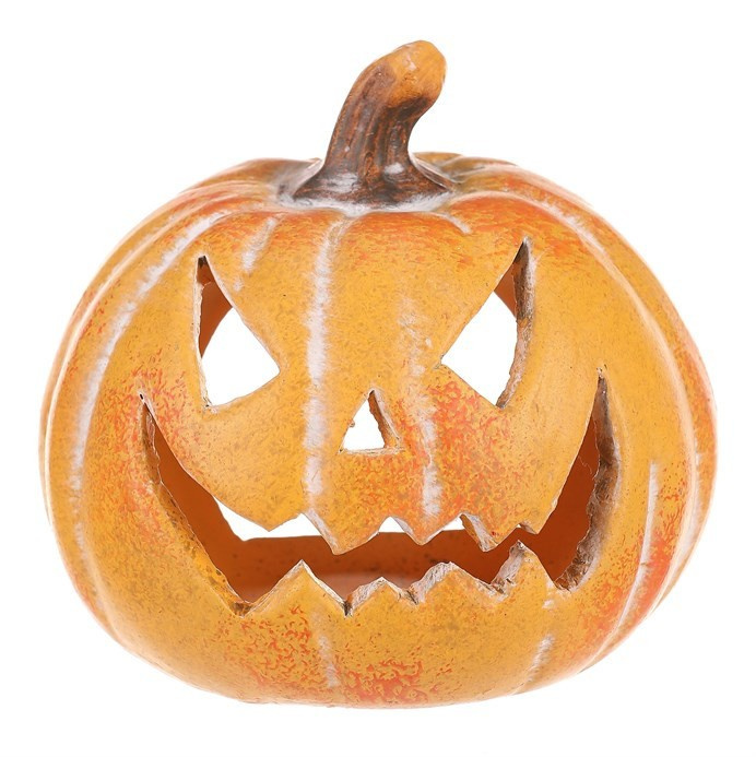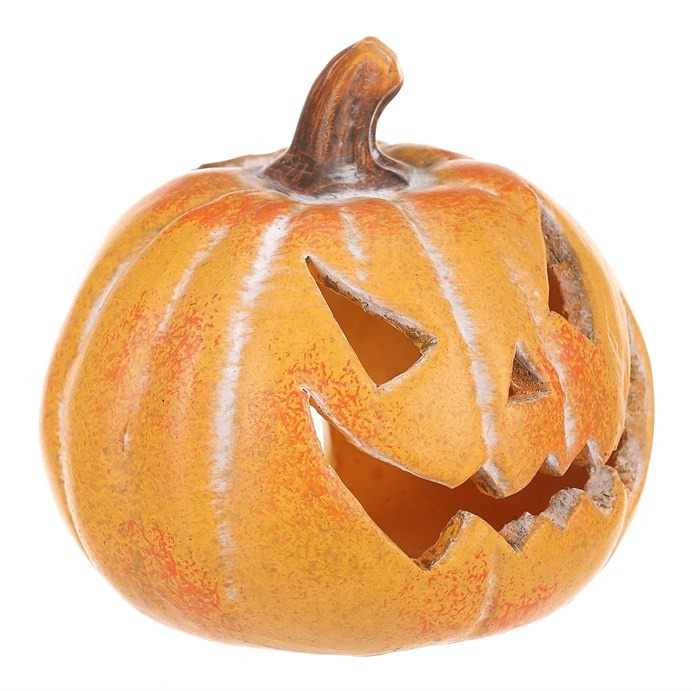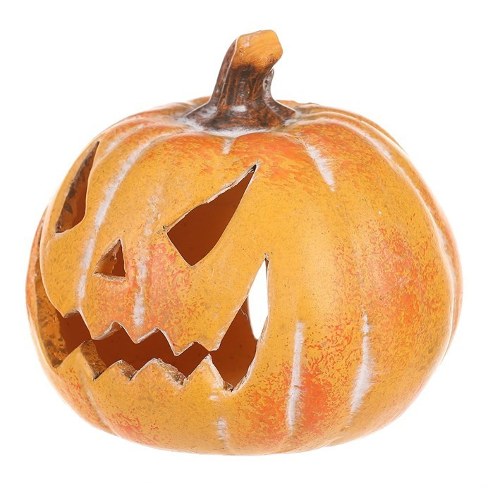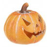 Dýně keramická - mini, s obličejem, na svíčku, kulatý tvar, žlutá