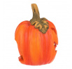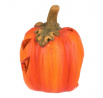 Keramická dýně s vyřezaným obličejem je typickou ozdobou pro podzim a zvláště pak Halloween. Dýně má v sobě dostatek prostoru pro vložení svíčky, čímž vytvoříte skutečně působivou atmosféru, zejména za tmy. Ve dne bude krásnou ozdobou, díky kombinaci sytě oranžové barvy se zelenými lístky a stopkou. O temných večerech a nocích, po zapálení knotu svíčky, vytvoříte jedinečný až strašidelný světelný efekt díky pronikajícím paprsků světla ven skrze všechny otvory