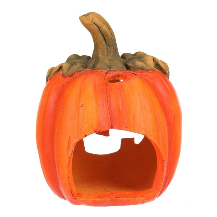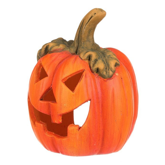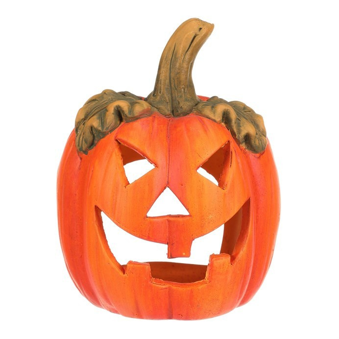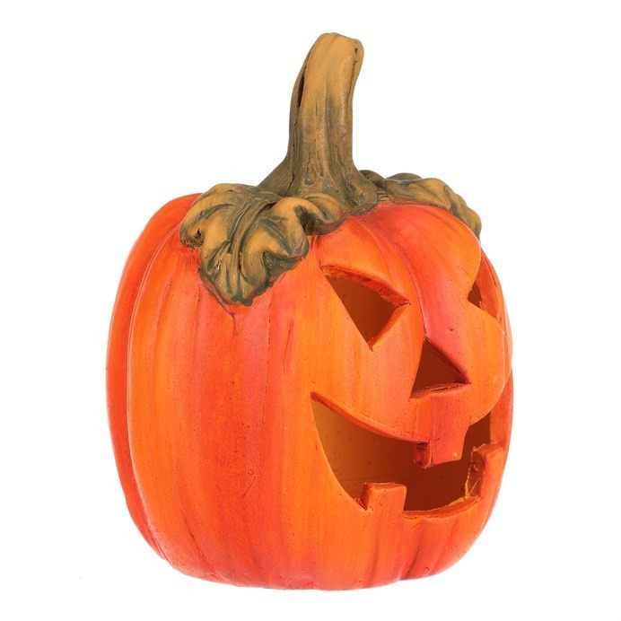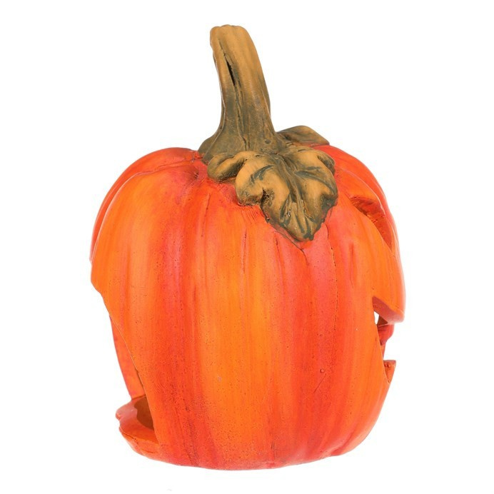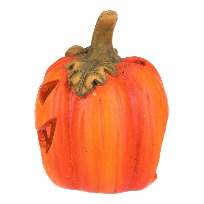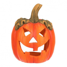 Keramická dýně s vyřezaným obličejem je typickou ozdobou pro podzim a zvláště pak Halloween. Dýně má v sobě dostatek prostoru pro vložení svíčky, čímž vytvoříte skutečně působivou atmosféru, zejména za tmy. Ve dne bude krásnou ozdobou, díky kombinaci sytě oranžové barvy se zelenými lístky a stopkou. O temných večerech a nocích, po zapálení knotu svíčky, vytvoříte jedinečný až strašidelný světelný efekt díky pronikajícím paprsků světla ven skrze všechny otvory