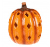 Žluto-oranžová dýně z keramiky s lesklým povrchem a prostorem, ve kterém je umístěné LED osvětlení, navodí tu pravou podzimní atmosféru. Po obvodu se nachází hranaté otvory v prizích, kterými budou po rozsvícení umělé svíce efektně procházet paprsky světla.