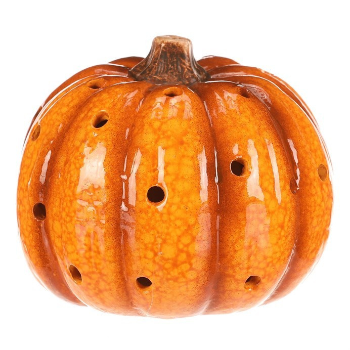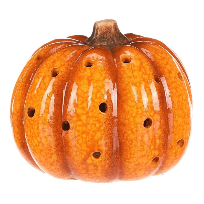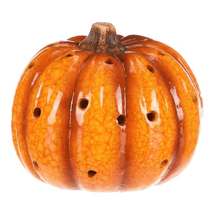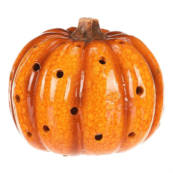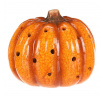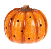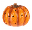 Žluto-oranžová dýně z keramiky s LED osvětlením uvnitř navodí tu správnou podzimní atmosféru. Po celém obvodu jsou různě poseté kulaté otvory, kterými bude světlo zevnitř krásně vycházet ven a vytvářet neodolatelný světlený efekt.