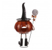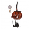 Oranžová kovová dýně s kloboukem a hůlkou zakončenou bubákem, sice vypadá strašidelně, ale její veselý výraz napoví, že to s tou hrůzou nebude tak zlé. Ideální dekorace na Halloween i podzimní večery, která potěší každého, kdo má rád trochu tajemna s úsměvem.