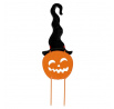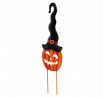 Dýně strašidelná s kloboukem - kovový zápich, oranžová