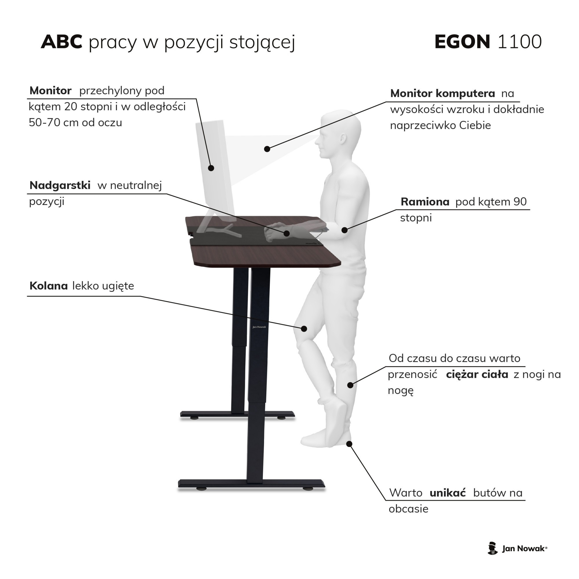 #html-body [data-pb-style=J9Y5PYP]{justify-content:flex-start;display:flex;flex-direction:column;background-position:left top;background-size:cover;background-repeat:no-repeat;background-attachment:scroll}#html-body [data-pb-style=QNUDL5H]{border-style:none}#html-body [data-pb-style=NNMJ3DU],#html-body [data-pb-style=UUXTNXN]{max-width:100%;height:auto}#html-body [data-pb-style=M41G92I]{justify-content:flex-start;display:flex;flex-direction:column;background-position:left top;background-size:cover;background-repeat:no-repeat;background-attachment:scroll}@media only screen and (max-width: 768px) { #html-body [data-pb-style=QNUDL5H]{border-style:none} }Vsaďte na ergonomii s elektrickým stolem EGON 1100 Víte, že nyní můžete mít i doma pohodlné a ergonomické pracoviště pro každodenní práci? EGON 1100 je inovativní elektrický stůl, který se skvěle hodí do malého prostoru, jako například. domácí kancelář. Vše díky spojení elegantního, kompaktního designu s výjimečnou technologií, která aktivně podporuje zdraví a lepší komfort práce.Dlouhé hodiny strávené prací u stolu mohou mít negativní dopady na zdraví. Aby tomu předešli, odborníci doporučují čas od času změnit polohu těla. Naše inteligentní stůl s nastavitelnou výškou vám nejen umožní pracovat ve stoje, ale také vám aktivně bude navrhovat, abyste po nějaké době tuto pozici změnili. Díky integrované paměti je možné nastavit optimální výšku pro práci v sedě a ve stoje pouhým stisknutím jednoho tlačítka.To však není všechno. Poznejte jedinečné doplňky, kterými je vybaven elektrický stůl EGON. Držák na sluchátka nebo na hrnek zajistí, že 110 cm šířky desky vašeho stolu využijete ještě efektivněji. Abychom zvýšili komfort vaší práce, přidali jsme také měkkou podložku pod myš ve velikosti XL.Spolehlivá technologie: plynulá regulace a funkce paměti v elektricky nastavitelném stole Díky nastavení výšky budete vždy pracovat přesně tak, jak chcete. Každá pozice, ať už sedící nebo stojící, bude pohodlná a stabilní, a úroveň desky – dokonale přizpůsobená tvé postavě, protože rozsah výšky je 72-117 cm. Mechanismus zvedáku je spolehlivý a funguje mimořádně hladce a tiše - hladina hluku je méně než 50 dB. Mechanismus regulace má funkci Memory a zapamatuje si dvě výšky, které si vyberete. Nejvhodnější nastavení stolu pro tvou postavu si tedy vybereš jen jednou a EGON ti ho zajistí pokaždé, když stiskneš příslušné tlačítko. Postarali jsme se o každý detail! IQ reminder - inteligentní funkce zdraví ve vašem elektrickém stole Změna polohy během dlouhých hodin práce u stolu je nezbytná, pokud chcete pečovat o své zdraví a držení těla. Naštěstí, náš elektrický stůl má funkci IQ Reminder – funkci, která ti každých 30, 40 nebo 60 minut připomene, abys zvedl nebo snížil desku a pokračoval v práci v jiné pozici. Získáte nezbytnou bezpečnost a plný komfort.IQ Reminder vznikl proto, aby nutnost pamatovat si na změnu polohy nenarušovala vaši práci nebo studium. Mysleli jsme na všechno! Jak udržet pořádek na stole s elektrickým nastavením výšky Ergonomie je nezbytná a pečlivě navržená konstrukce je způsob, jak učinit práci nejen bezpečnou, ale také mnohem příjemnější. Naše elektrické stůl má dva odolné, praktické držáky – jeden z nich je určen na sluchátka nebo jakýkoli předmět, který potřebujete mít po ruce, a druhý z nich udrží váš hrnek. Úchyty ti zajistí pohodlí, pomohou udržet pořádek na pracovní ploše a zabrání nehodám, chráníc zařízení nebo dokumenty před politím. Nezbytné organizéry kabelů ovlivňující pořádek na pracovním místě Dobře zorganizované pracovní místo usnadňuje plnění pracovních povinností. To je důvod, proč elektrický stůl na zadní straně desky má speciální organizér na kabely - umožňuje udržet nezbytný pořádek mezi kabely a zabraňuje jejich zamotání. Dodatečně jsme spodní část desky vybavili speciálními klipsy, které udrží kabel mechanismu pro nastavení výšky.Naše elektrické stůl se bude skvěle prezentovat, dodá interiéru elegantní charakter a promění místnost v prostor ideální pro práci – vhodně zorganizovaný a uspořádaný. Solidní deska a příslušenství zajišťující odolnost elektrického stolu na léta EGON má odolnou desku o tloušťce 15 mm a šířce 110 cm, která unese až 80 kg! Náš elektrický stůl poskytuje dostatek místa a pojme vše potřebné pro každodenní práci. Vnitřní rozteč nohou je 77.5 cm, takže bez překážek budeš moci zasunout židli a zaujmout pohodlnou pozici. Měkká podložka ti umožní pohodlně opřít předloktí a plynule posouvat myš, takže jistě oceníš její kvalitu. Navrhli jsme ji ve velikosti XL, takže se originálně prezentuje a zajišťuje plný komfort. Každodenní práce před obrazovkou počítače nemusí být škodlivá pro zdraví a nebezpečná pro držení těla. Stůl s nastavitelnou výškou je skvělý způsob, jak spojit sedavou a stojící práci do ergonomického celku. Model EGON se bude po dlouhá léta starat o vaše pohodlí a bezpečnost.