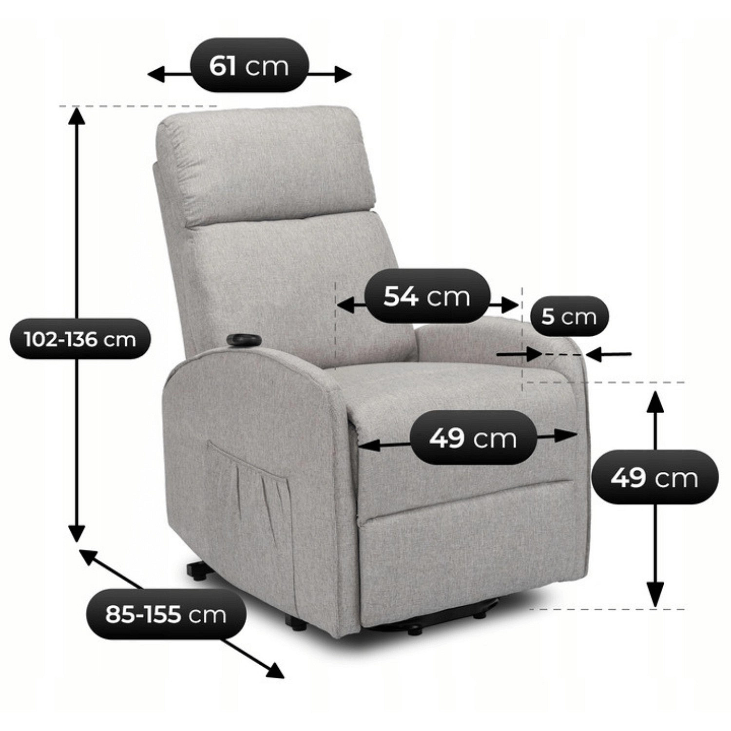 Elektricky Polohovatelné Křeslo COLTON s Funkcí Vstávání Šedé