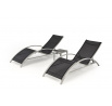sada 2 lehátek se stolkem, rozměry: 160/60/66-92 cm - lehátko, 30/30/30 cm - stolek, materiál: síťovina / práškově lakovaná ocel, barva: černá / světle šedá
