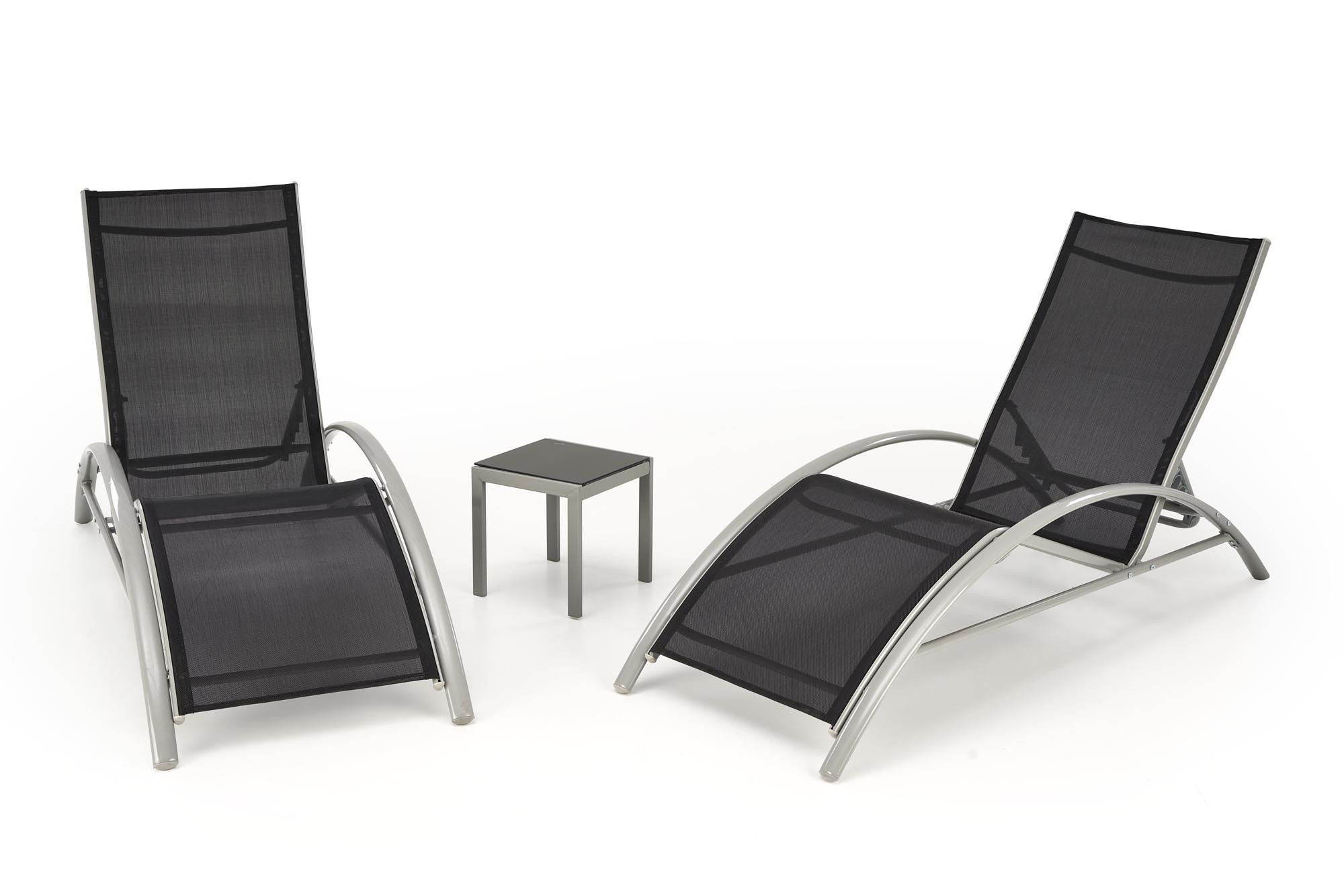sada 2 lehátek se stolkem, rozměry: 160/60/66-92 cm - lehátko, 30/30/30 cm - stolek, materiál: síťovina / práškově lakovaná ocel, barva: černá / světle šedá
