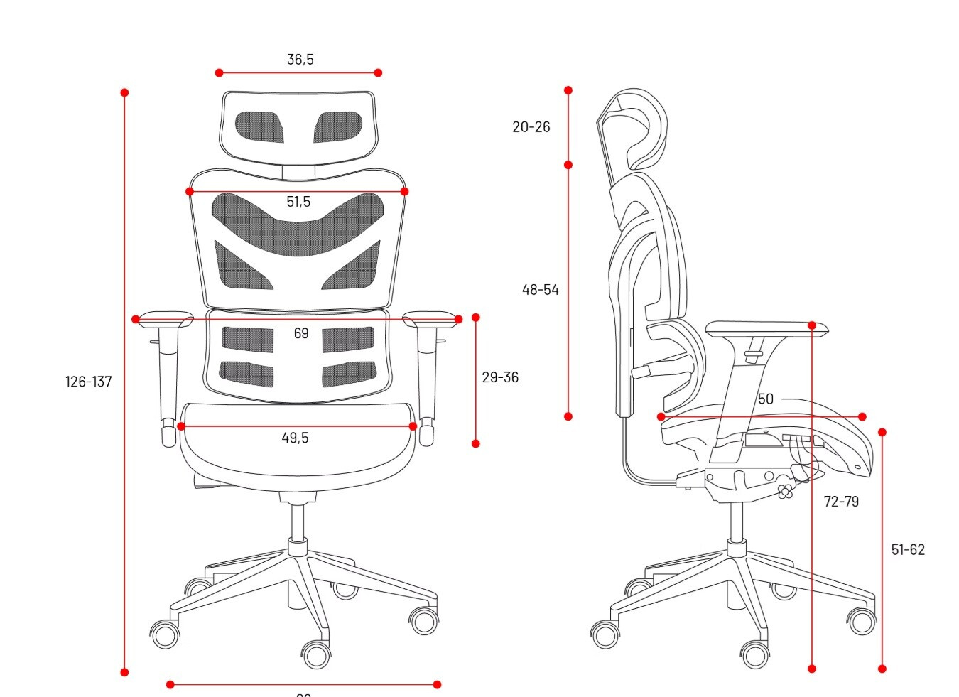 | Výška sedu - nastavitelná v cm | 51 - 62 |