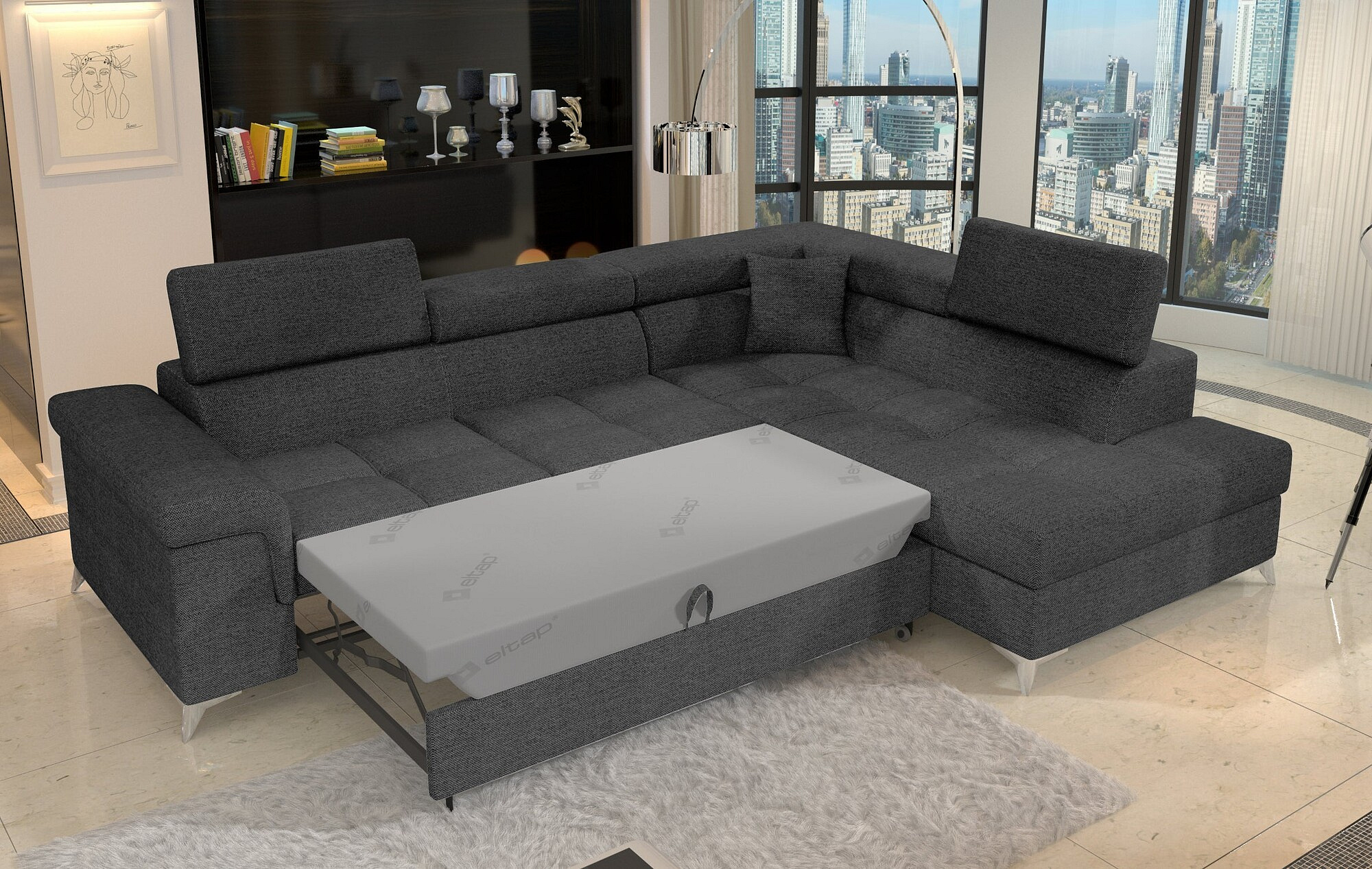 Objevte dokonalou kombinaci elegance, pohodlí a praktičnosti s naší rohovou sedací soupravou ERIDANO. Tato stylová sedací souprava je navržena tak, aby se stala středobodem vašeho obývacího pokoje a poskytla vám maximální komfort při každodenním odpočinku.