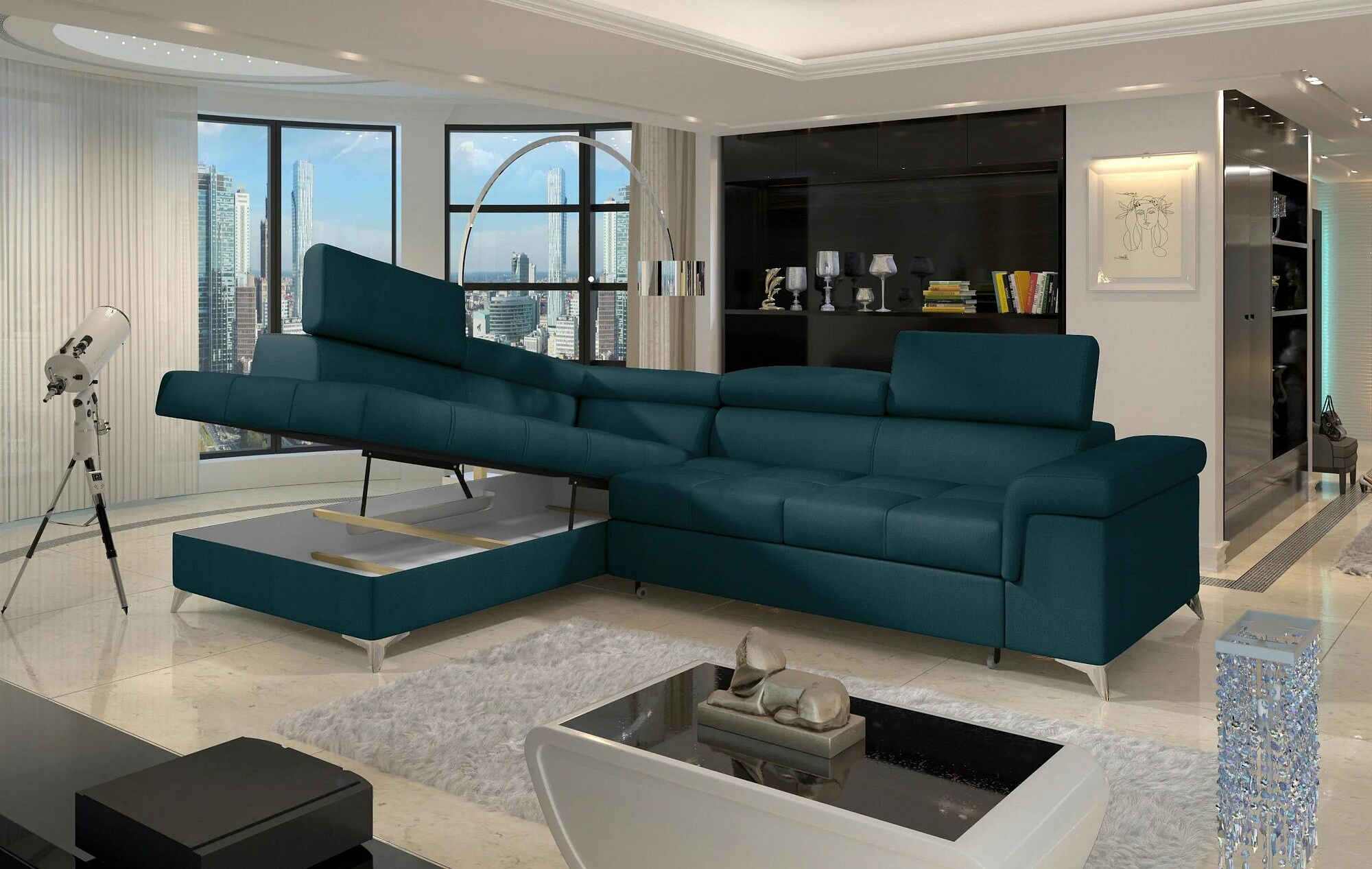 Rohová sedací souprava ERIDANO je ideální volbou pro ty, kteří hledají spojení stylu, funkčnosti a pohodlí. Její moderní design a praktické funkce ji činí skvělým doplňkem do každého obývacího pokoje. Nechte se okouzlit jejím vzhledem a užijte si chvíle relaxace s rodinou a přáteli.
