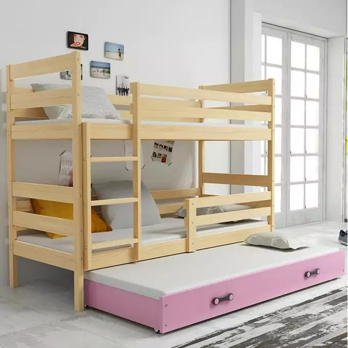 ERYK 3 OSOBOWE RAMA SOSNA SZUFLADA RÓŻOWY 80 X 190 KPL