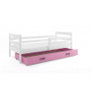 Dětská postel ERYK 90x200 cm se šuplíkem, bez matrace, Bílá/Růžová